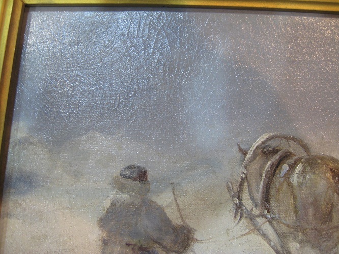 Может подскажете кто может являться автором ? Холст , масло , 32х42 см Картина была наклеяна на картон . Отдал реставратору и ей подклеяли кромки и натянули на подрамник . |