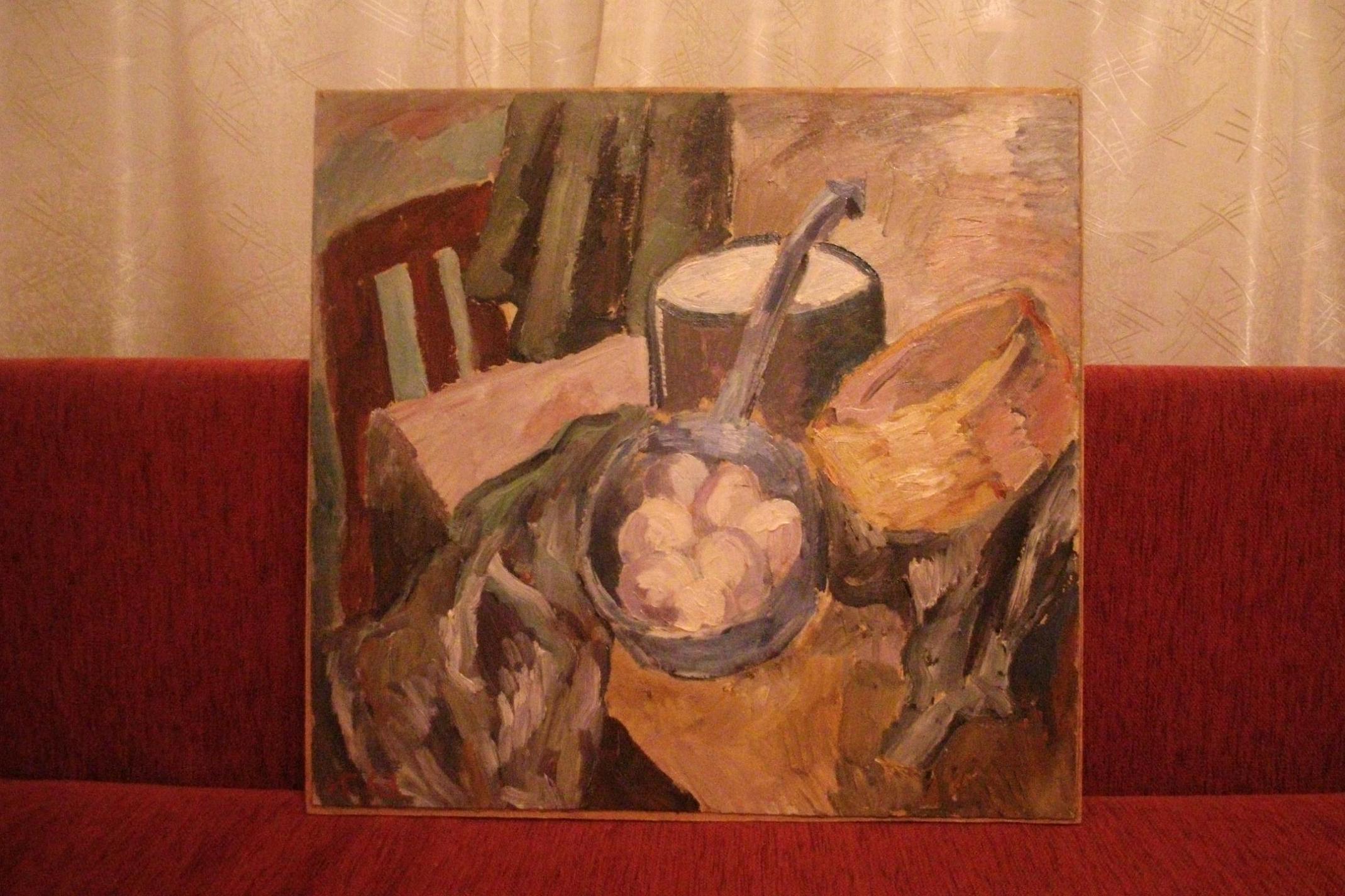 Selling work of the famous Leningrad Petersburg nonconformist artists Igor Ivanov's " Still Life ", oil on cardboard, 1963. , Size 56 by 59 cm was painted in the studio Sidlin , a written confirmation of the authenticity of the author's photo of the artist to the painting . The picture on the back signed by the author . Of course, ready for any authentication by the buyer.