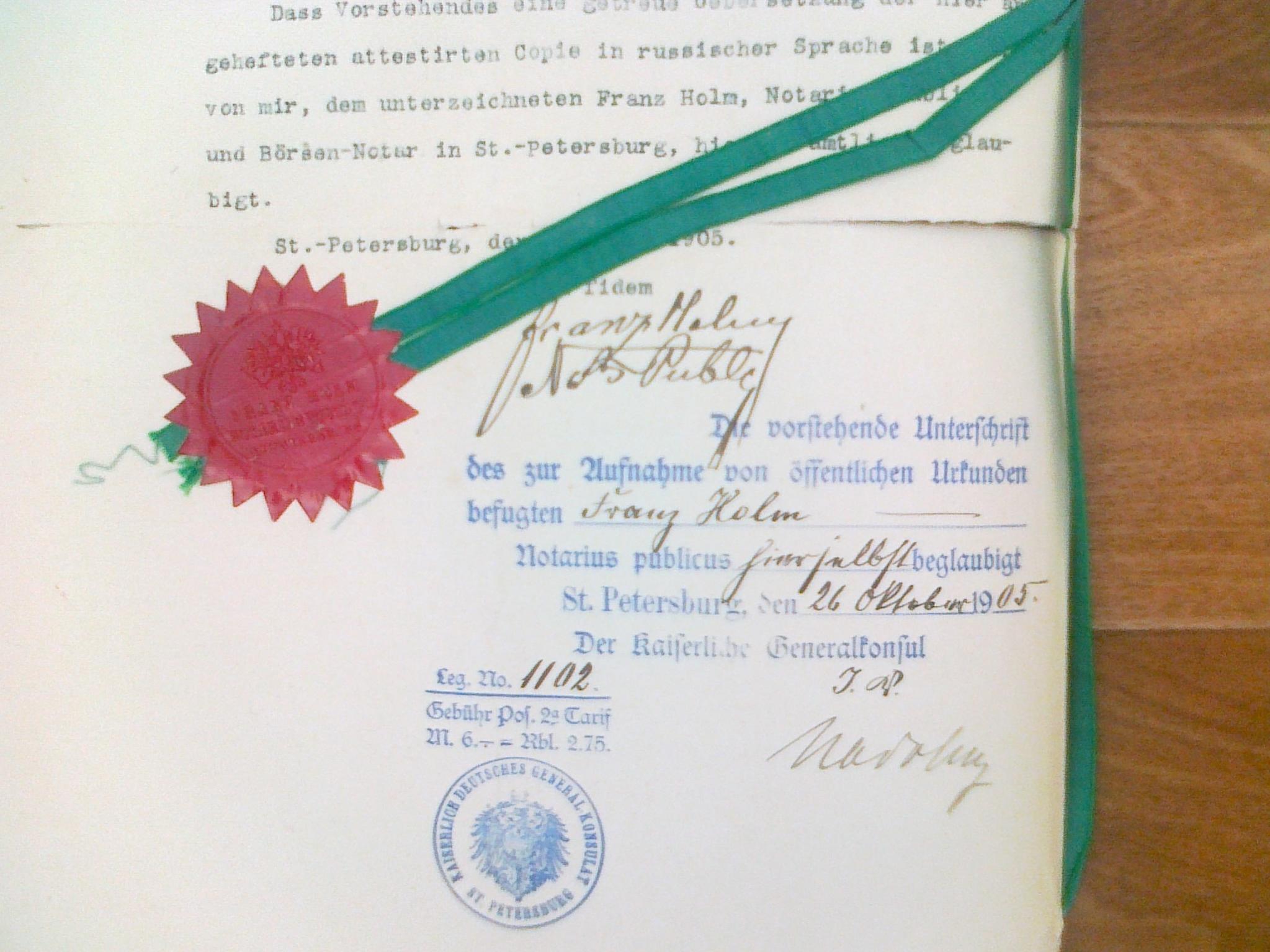 дочери барона Врангеля Николая Александровича, русского генерала, управляющего делами и адъютанта Великого князя Михаила Александровича, командира 16-го гусарского Иркутского полка. Документы: 1. Свидетельство о рождении (оригинал и копия 4 листа) размер листа: 39,5 х 25,5 см 2. Свидетельство о дворянском звании, выданное Эстляндским предводителем губернского дворянства (оригинал 2 листа) за 1899г.размер листа: 35,5 х 22 см. 3. Свидетельство из того же дворянского дома, о том что девица, баронесса Врангель М.Н. принадлежит к внесенному в Эстляндский дврорянский матрикул к роду баронов фон Врангель (оригинал 2 листа) за 1913 г. размер листа: 35,5 х 22 см. 4.Свидетельство об бразовании (оригинал 2 листа) за 1914 г. размер листа: 40 х 25,5 см. Некоторые листы имеют надрывы в районе переломов бумаги. По поводу цены, пишите в личные сообщения или на почту.