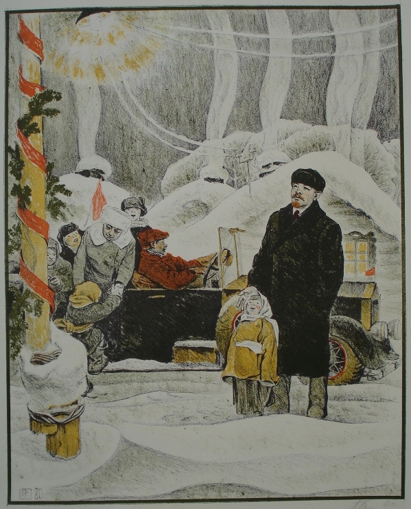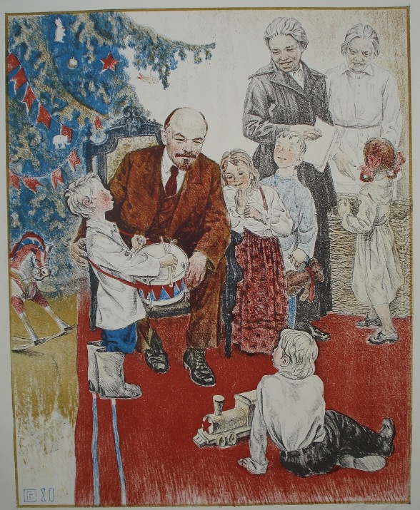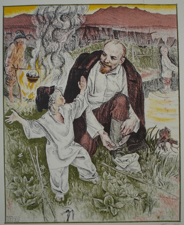 Я попытался бы поискать автора среди иллюстраторов книжек из серии "Рассказы о Ленине для детей" или "Ленин и дети".