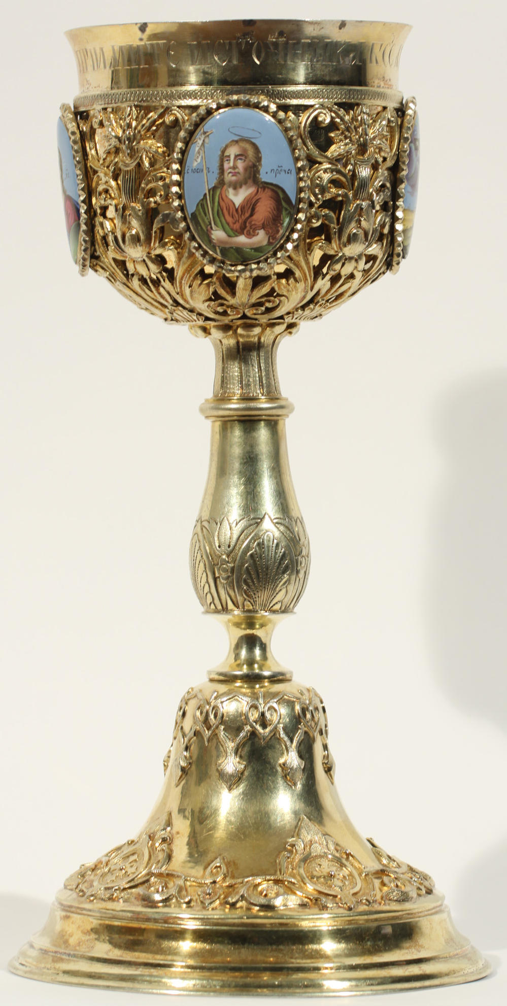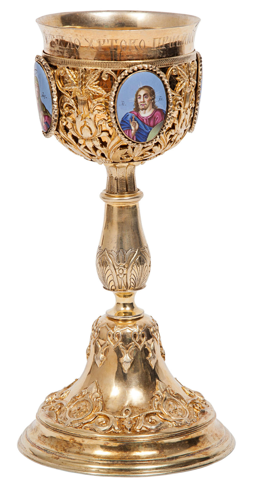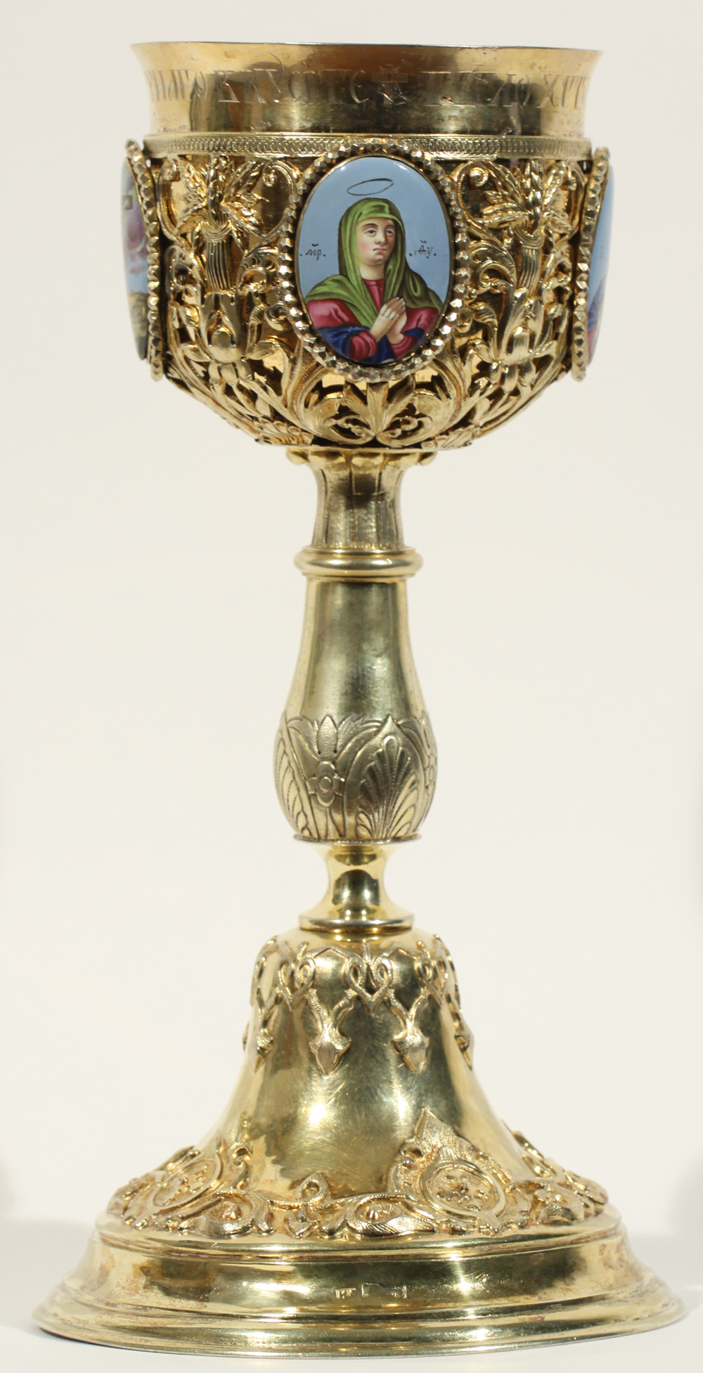 Потир евхаристический, серебро 84 пр., четыре медальона с эмалями, Российская Империя, Москва, 1844 г.