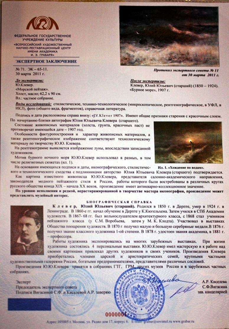 | Ю.Ю.Клевер (старший)? Ваше мнение | ВЯЧЕСЛАВ | Экспертиза | 22 | 17.03.2009 14:04 |