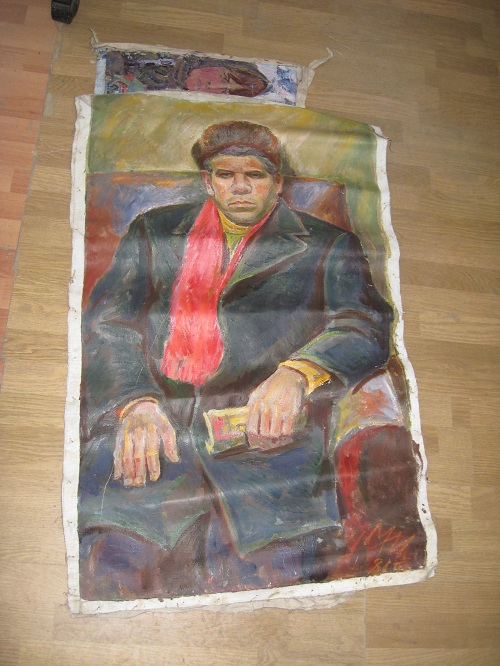 Размеры на обороте от 70х50 см до 150х200 см картина "ЗА РОДИНУ" разрезана пополам За все 35000 рублей + пересыл СПСР |