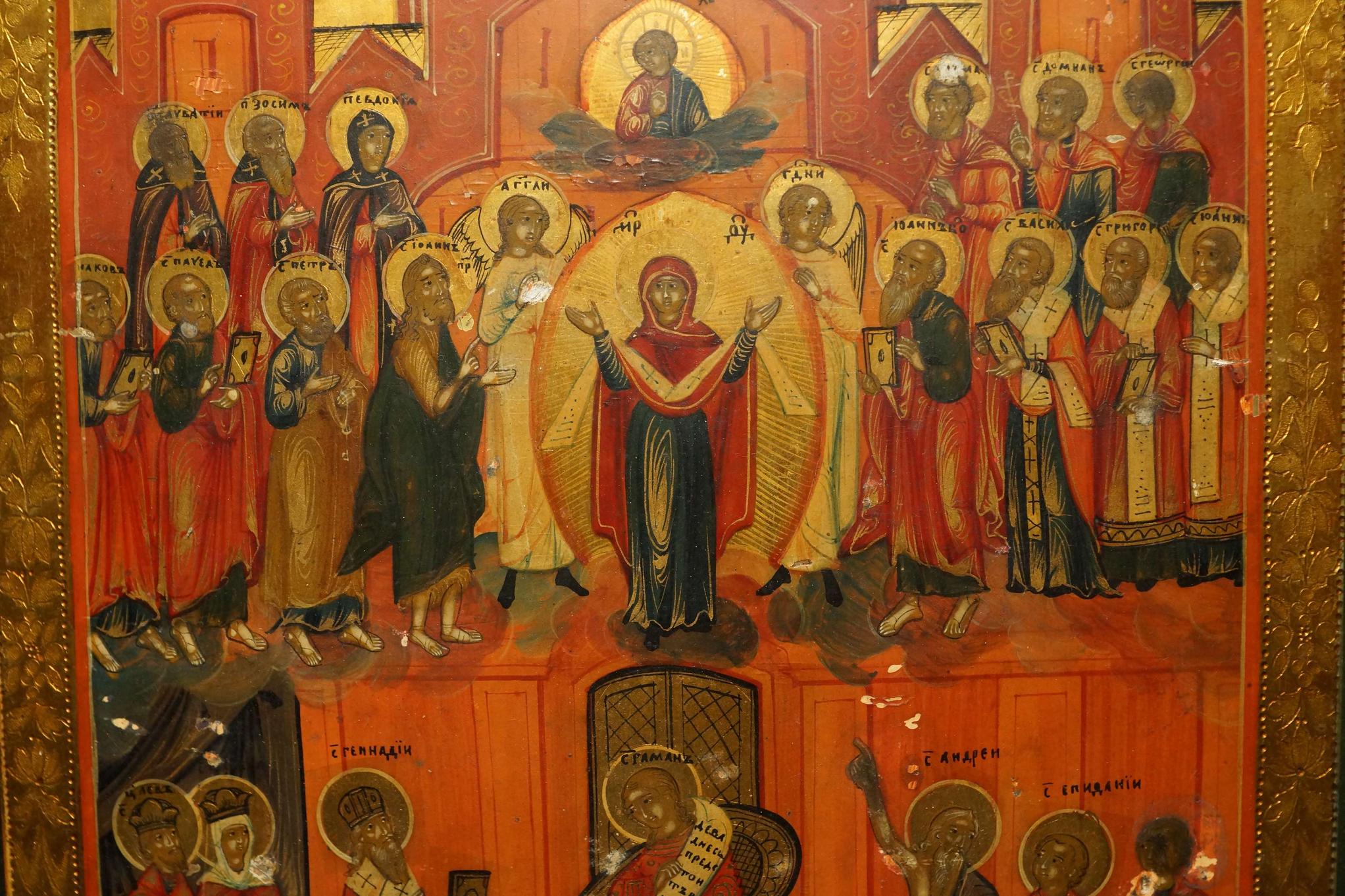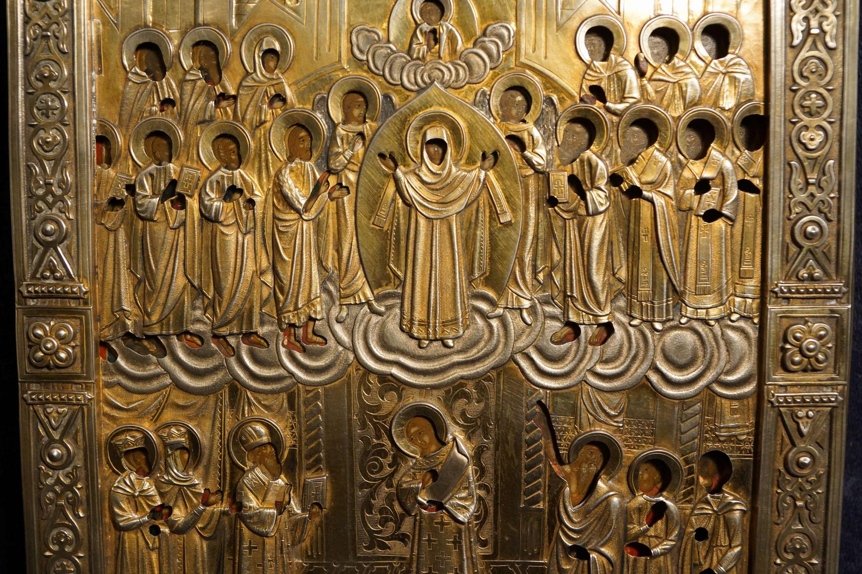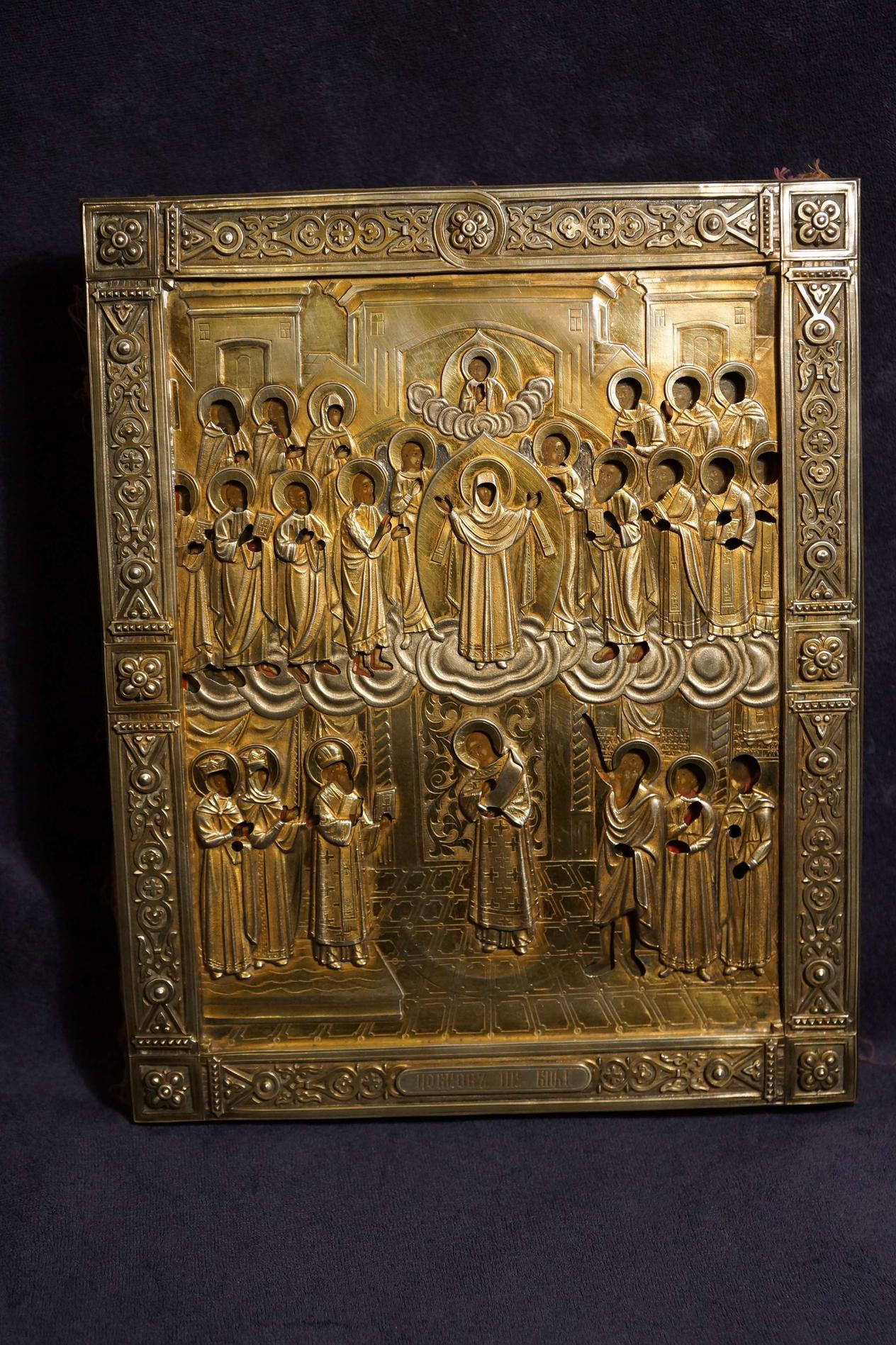 Икона Покров Пресв. Богородицы в серебряном кованом окладе. Российская Империя, Москва, 1896 г.