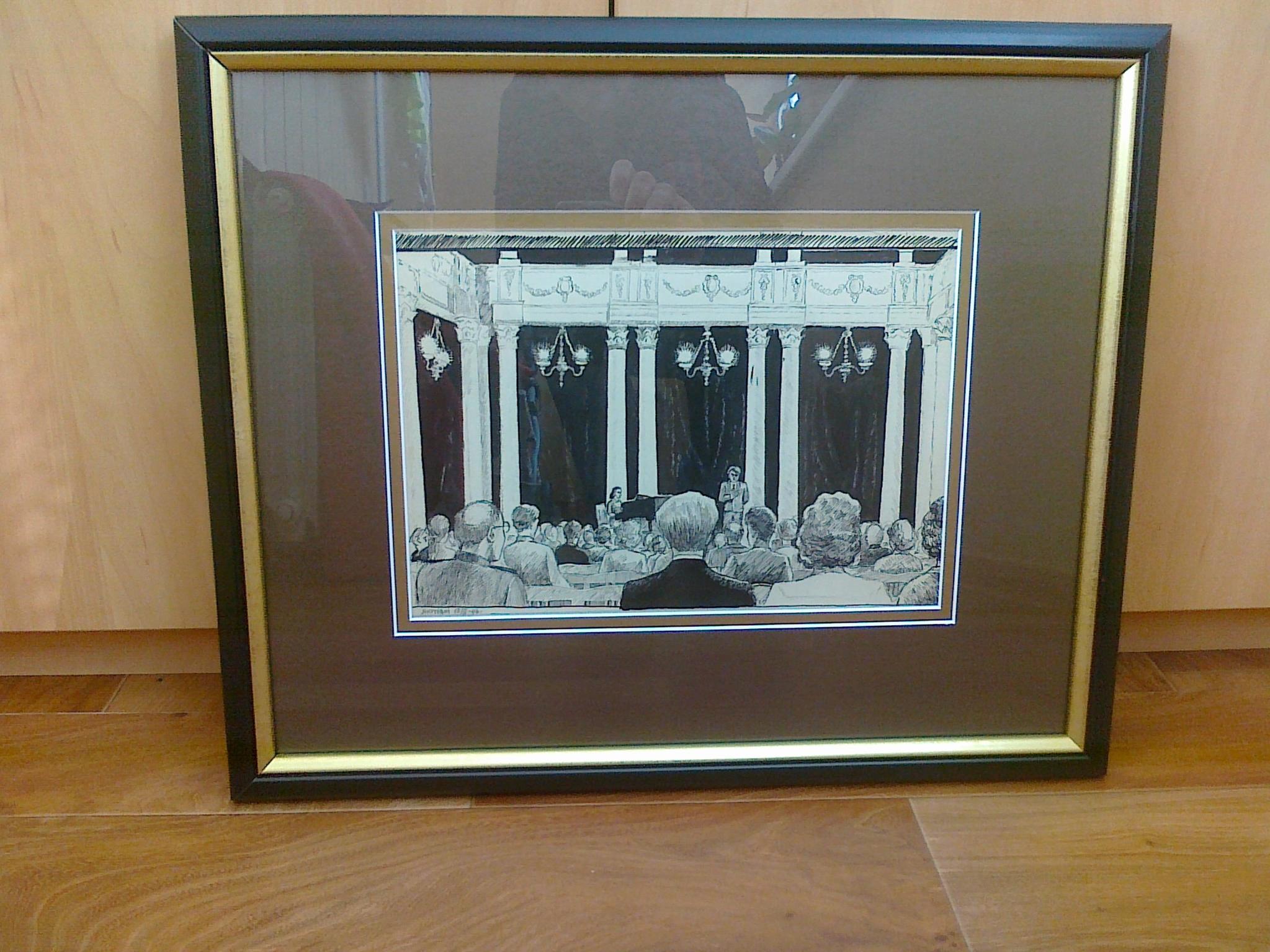 This time - ink, pen . Depicts the interior of the Kiev Philharmonic. paper ink, pen in the lower left corner of the signature and date: 12. 3. '46 Sheet size : 22 x 29 cm size with frame : 40 x 48 cm George V. Yakutovich (1930 - 2000) - Sovetskaya and Ukrainian painter and graphic artist. Member of the Academy of Arts of the USSR ( 1988), professor at the Academy of Arts of Ukraine (1995) , a member of the National Union of Artists of Ukraine. Price pleasing ears - $ 300 + shipping