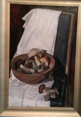 В.Жемерикин "Грибы" 1972г. 75 / 49 картон / масло Народный художник России (1985). Член-корреспондент Академии художеств России (1983). Лауреат Государственной премии им. И.Е.Репина (1986). Почетная грамота Министерства культуры РФ (1979, 1985). Родился в г. Улан-Баторе МНР в 1942 году. Окончил Иркутское художественное училище (1956-1961) и Институт им. И.Е.Репина АХ СССР (1966-1972). Живописец. Работает преимущественно в области жанровой картины, портрета, а также пейзажного жанра. Автор ряда картин о Великой Отечественной войне 1941-1945г.г. Член Союза художников России с 1974 года. С 1972 года - постоянный участник областных выставок. Экспонент зональных("Большая Волга", 1974, 1980, 1985, 1991, 1998, 2003), республиканских (1975, 1976, 1977, 1980, 1983, 1985, 1994), всероссийских (Москва, 1981, 1985, 1994, 2000) художественных выставок. Персональные выставки: Н.Новгород, 1994, 1996, 1998, 2000, 2002. С 1987 года - секретарь Правления Союза художников РСФСР, член Правления СХ СССР (1988-1992). Председатель выставкома "Большая Волга" (1980, 1991). Председатель правления Нижегородской организации СХ РСФСР (1979-1982; 1984-1986).