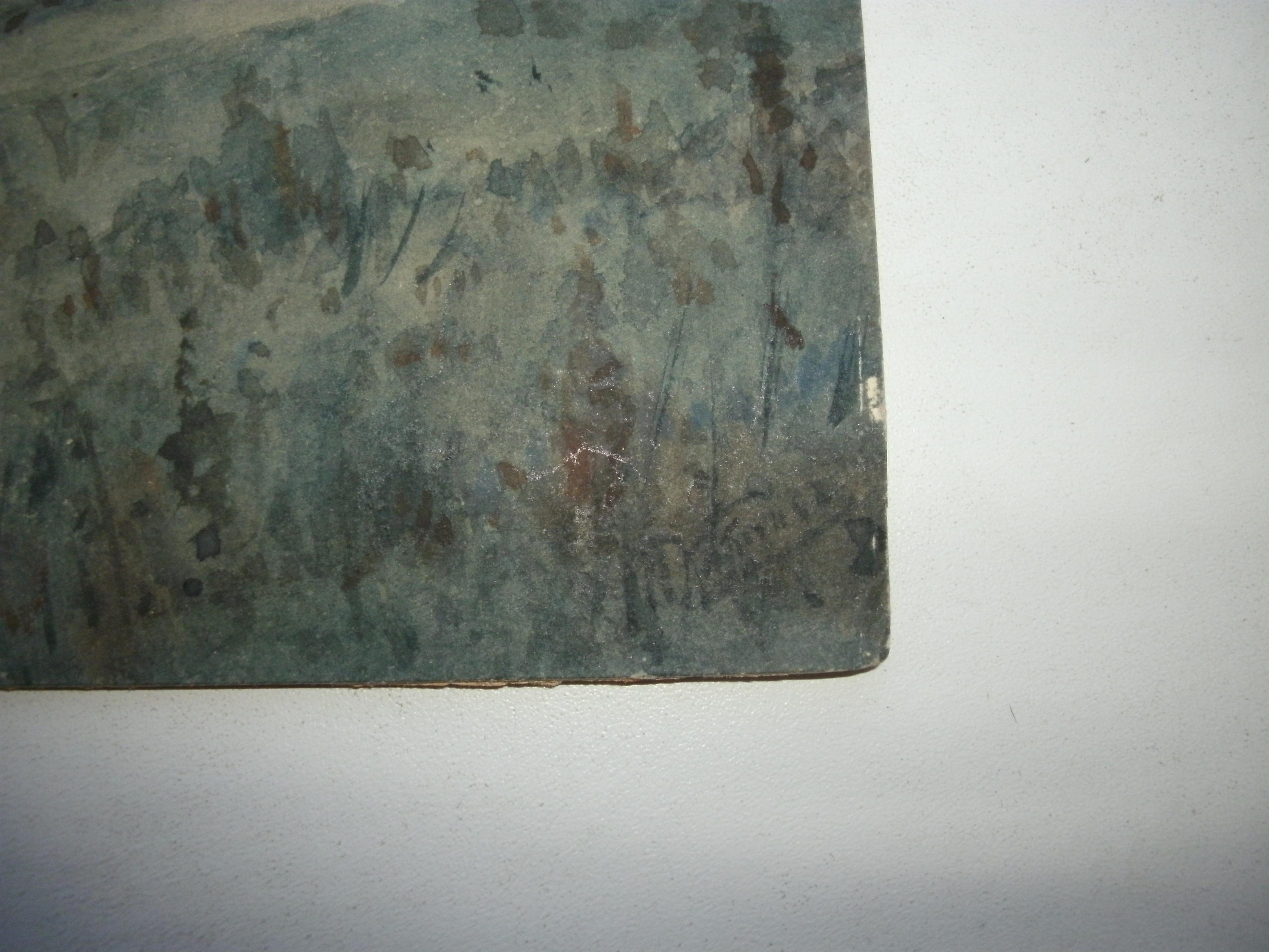Hello Judged the case, the remainder of the father and found an old picture ( watercolor on cardboard ), which has seen his grandfather , in his time. Grandpa a little fond of collecting and , characteristically, " slag " is not going , so I'm interested. Determine what kind of artist I did not leave, though looking like he could. Thanks in advance for your help.