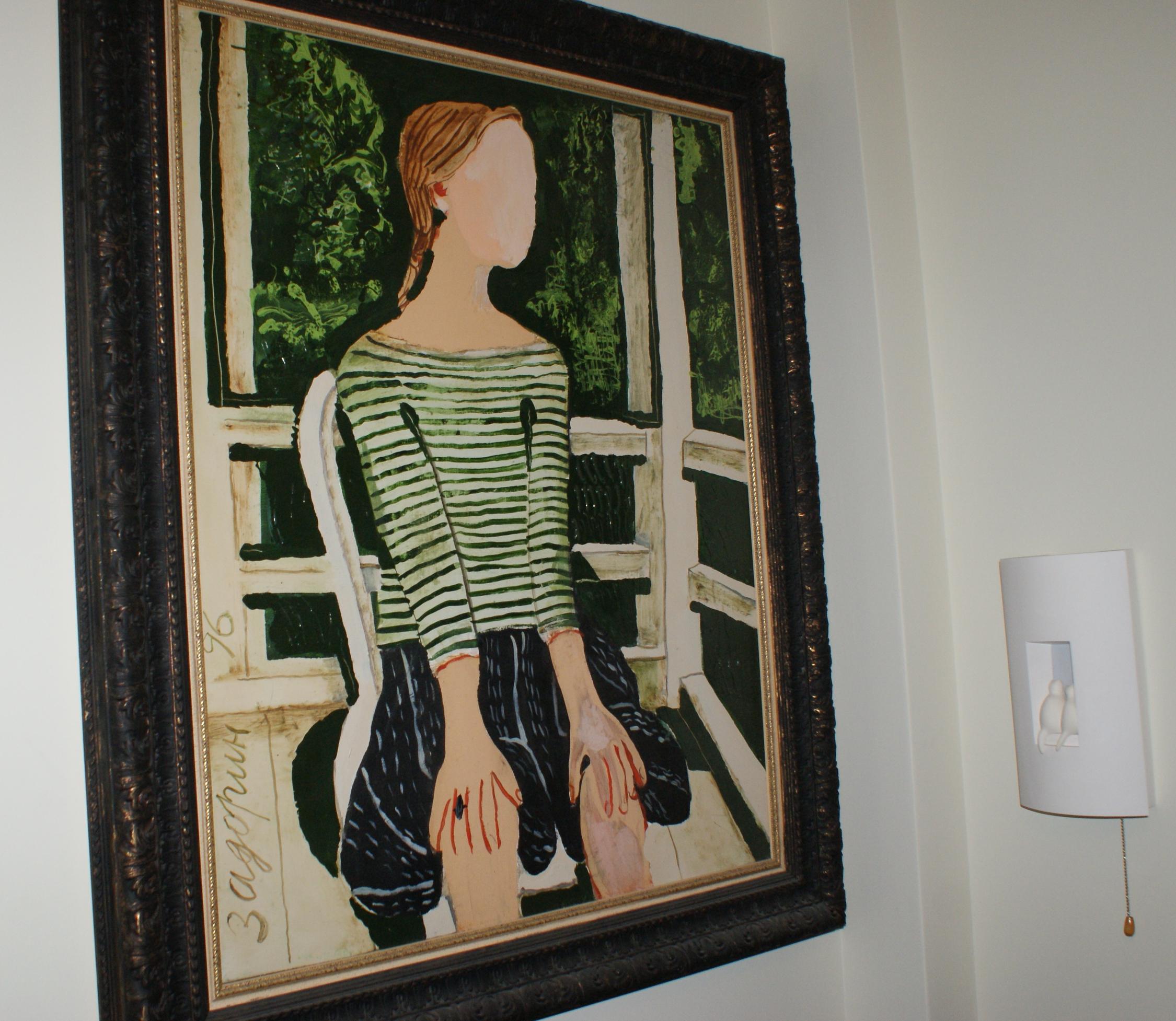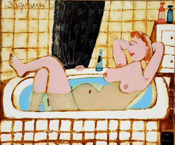 Александр Задорин: 1. Музыкантша, холст/масло, 100 х 80 см., 1995 г. 2. Уличное кафе, оргалит/масло, 122 х 112 см., 2006 г. 3. Портрет без лица, холст/масло, 100 х 80 см., 1996 г. 4. В ванне, холст/масло, 100 х 120 см., 2003 г. http://forum.artinvestment.ru/showth...задорин Александр Задорин получил классическое художественное образование: выпускник ленинградской СХШ им. Б. Иогансона, успешно закончил кафедру керамики и стекла в ЛВХПУ им. В. И. Мухиной (ныне СПГХПА им. А. Л. Штиглица). Ещё будучи студентом, участвовал в выставках вместе со своими преподавателями Г. Егошиным, З. Аршакуни, В. Ватениным. Диапазон творчества художника широк, особое внимание Задорин уделял декоративным скульптурным формам из керамического пласта. Одна из таких работ, «Кукольный театр», получила почетный диплом, участвуя в конкурсе в городе Фаэнца, Италия, в 1974 году. После этого его работы постоянно представляют страну на выставках и конкурсах, появляются публикации в журналах «Декоративное искусство», «Творчество», «Нева» и других изданиях. В 1976 году А. Задорин вместе со своими коллегами организовал группу художников-керамистов «Одна композиция». В течение десяти лет группа ежегодно устраивала показ одной, главной работы года. Художники стремились доказать право на новый пластический язык, свойственный только керамике. В эти годы у А. Задорина появился ряд монументальных работ, таких как «Летарь», «Всадник», «Автопортрет», «Человек и конь», «Сидящая», «Отдых», «Семья» и др. Эти работы тяготеют к скульптуре, но основаны на технологических приемах керамического языка (гончарных формах, формах пласта) и включают элементы деревянных конструкций — стульев, дверей и т. д. Они принесли Задорину известность не только в России, но и в других странах. С 1990 Александр Задорин участвует в международных симпозиумах и выставках, проводит мастер-классы в университетах США, Финляндии, Израиля, Франции, Литвы, Венгрии. Благодаря помощи фарфорового завода им. Ломоносова в Санкт-Петербурге Задорин создал большую серию пластических композиций из фигур, сделанных в бисквите. Последние 15 лет своего творчества А. Задорин посвящает в основном живописи. В 1997 году А.Задорин получил диплом Российской академии художеств, а в 1998 году стал заслуженным художником России. «Искусство есть эманация боли и печали», — как-то сказал Пикассо. «И — радости», — добавил бы Александр Задорин. Работы художника находятся в Государственной Третьяковской галерее (Москва); Государственном музее истории Санкт-Петербурга (СПб); Всероссийском музее декоративно-прикладного и народного искусства (Москва); Государственном музее-заповеднике «Царицыно» (Москва); Государственном музее керамики и «Усадьбе Кусково XVIII века» (Москва); Омском областном художественном музее (Омск); Музее международной керамики (Кечкемет, Венгрия); в собрании художественной галереи города Саутгэмптон (Англия) и др.