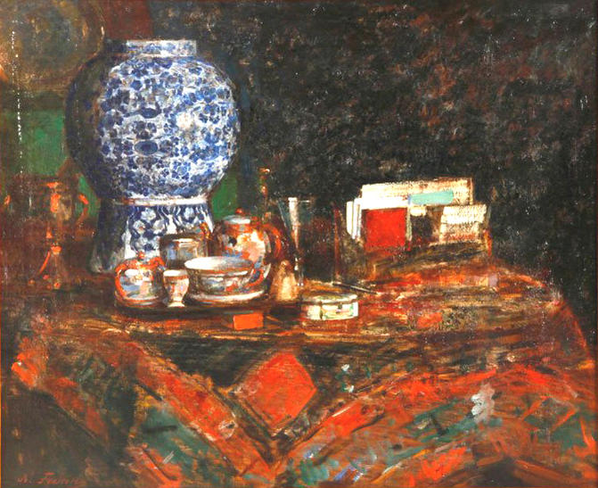 Если Вам или кому другому попадётся вот эта картина с подписью Фешин, то знайте, это не работа Фешина. Данная выставлялась в том же американском Массачусетсе на аукционе Камински где-то пол-годика тому назад. Данный предмет можна отнести к яркому примеру художественно-исторического вандализма, где жажда наживы не остановила руку поддельщика перед кощунством. На самом-то деле, это картина немецкого художника Ганса Колитца (Hans Kolitz,1874-1961), "Натюрморт с антиквариатом", 1912. Данная картина продавалась в Польше на аукционе Агра в далёком 2008 году и была реализована по цене около 2500 долларов США. После смытой оригинальной подписи и добавленой подписи Фешин, картина оценивалась в 40-60 тысяч долларов. Но бдительный глаз не дал поддельщикам реализовать свой мошеннический замысел. Картина была снята с торгов, и данный случай попал в поле зрения соответствующих органов. На фото - оригинал с подписью Kolitz в правом верхнем уголке и фото с подписью Фешин в левом нижнем. Будте предельно бдительны. Последний раз редактировалось Jane Doe; 01.07.2013 в 22:12. |