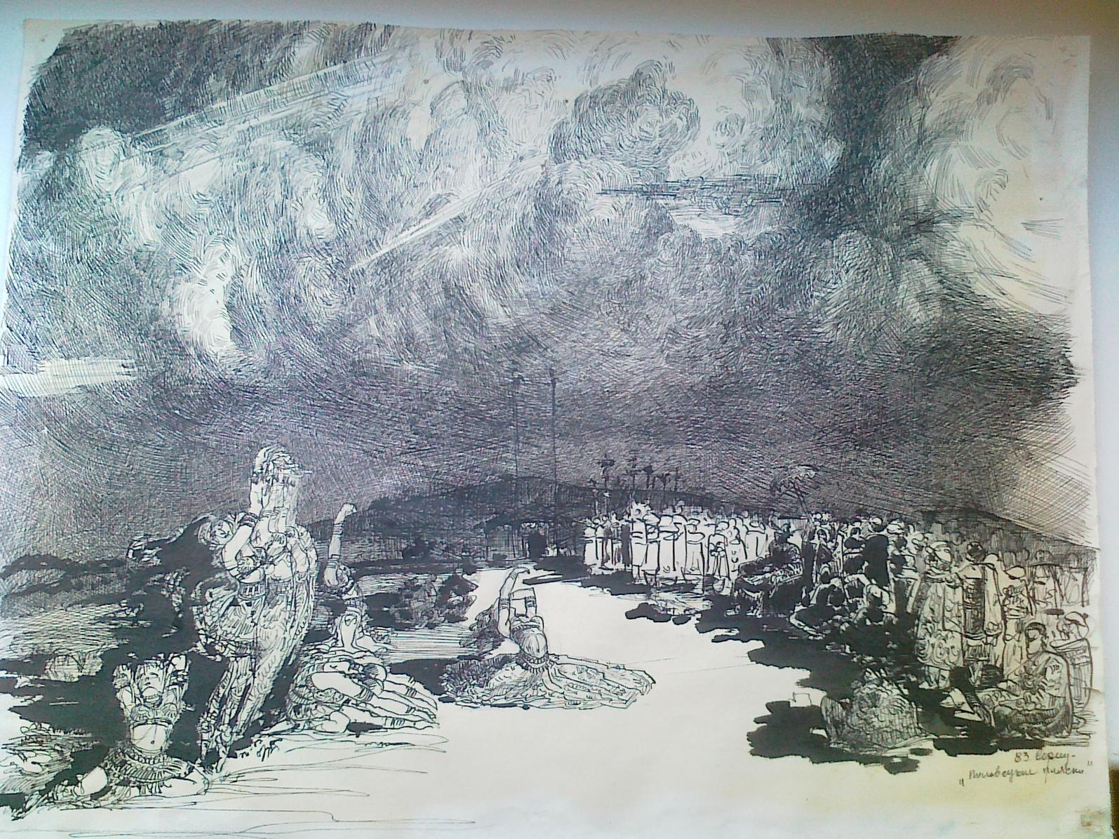 Author trudnoopredelyaem, signed lower right On the reverse side of the paper pencil sketch. laid paper ink, pen 37 x 50 cm Location of the object: Kiev Price $ 150 including shipping.