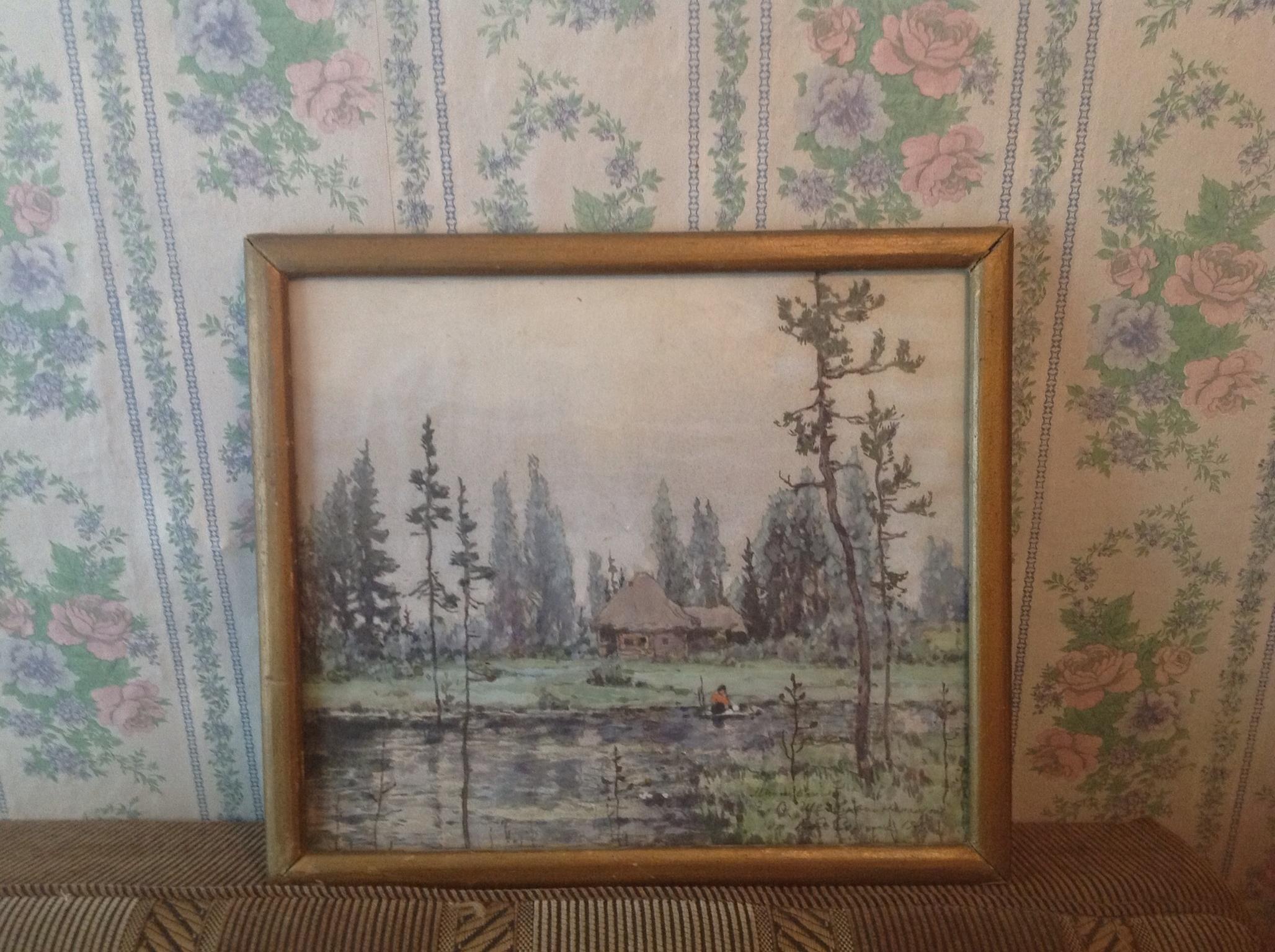 1. Акварель, пастель, бумага в раме под стеклом 40 x 35 см с дарственной надписью автора, художника Соколова Н.А. (Кукрыниксы), год 1946.(пейзаж)