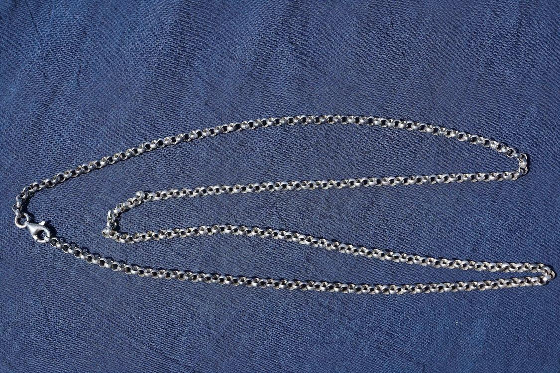 Reliquary cross in the ancient Byzantine style with a massive silver chain handmade.