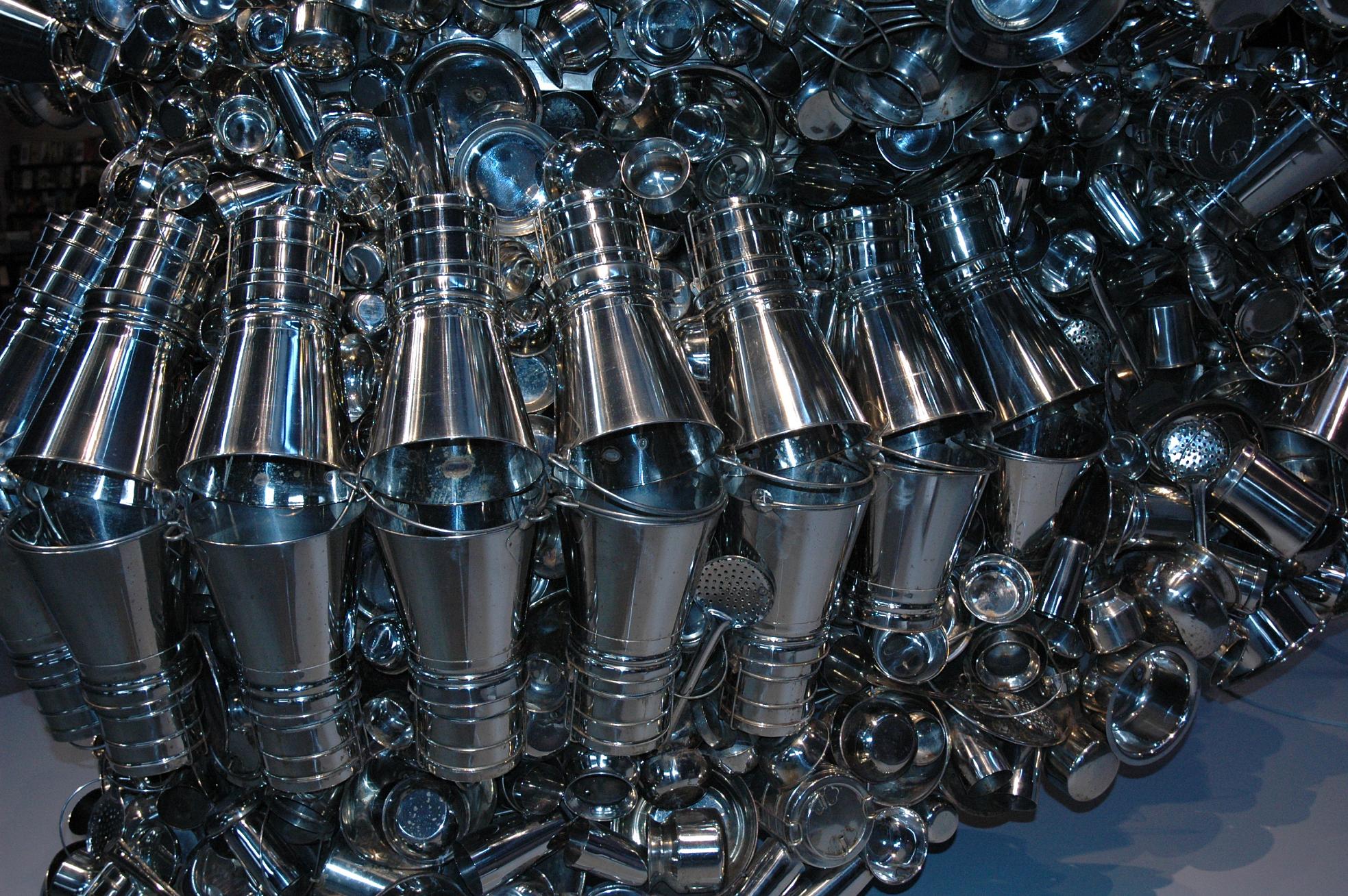 1-5. Вы только заходите в Гараж и……Ух ты!!! Субодх Гупта. «Очень голодный Бог», 2006, конструкция из нержавеющей стали, кухонная утварь, 320х280х330 см 6-8. Субодх Гупта. Дорога домой I. 1998 – 1999. Алюминиевая кухонная утварь, стеклопластик, клейкая серебряная пленка. |