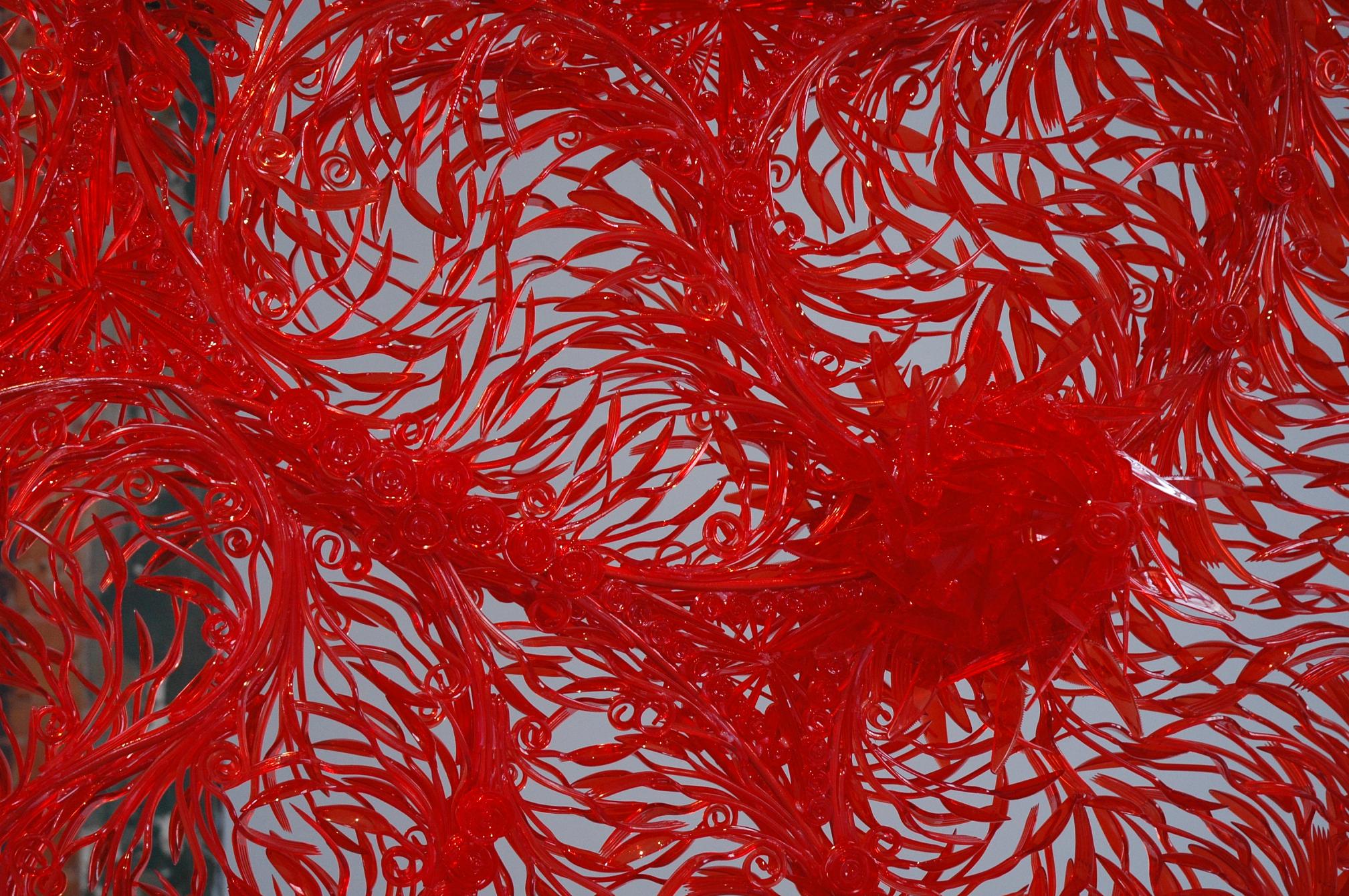 41-45. Хоана Васконселуш. «Независимое сердце (красное) №3», 2008, 345х200х80 см. Вращается. Чугун, красные пластмассовые ложки, ножи и вилки, , цепь, музыка в исполнении Амалии Родригеш.