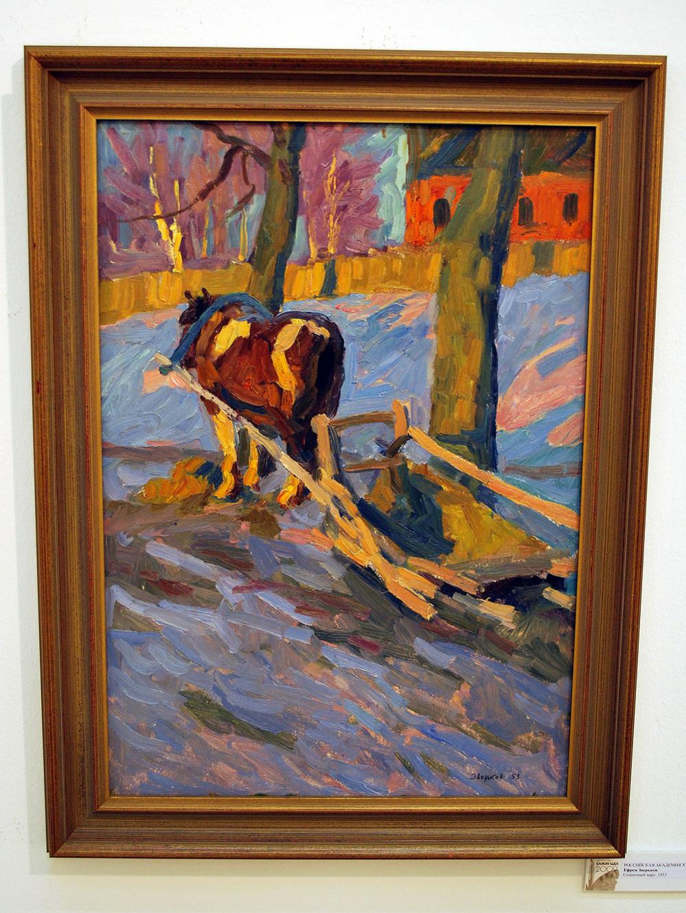 Zverkov Ефрем Зверьков. Солнечный март. 1953. Российская академия художеств. Koncedailov Владимир Концедайлов. Отражения. 2009. Белорусский союз художников |
