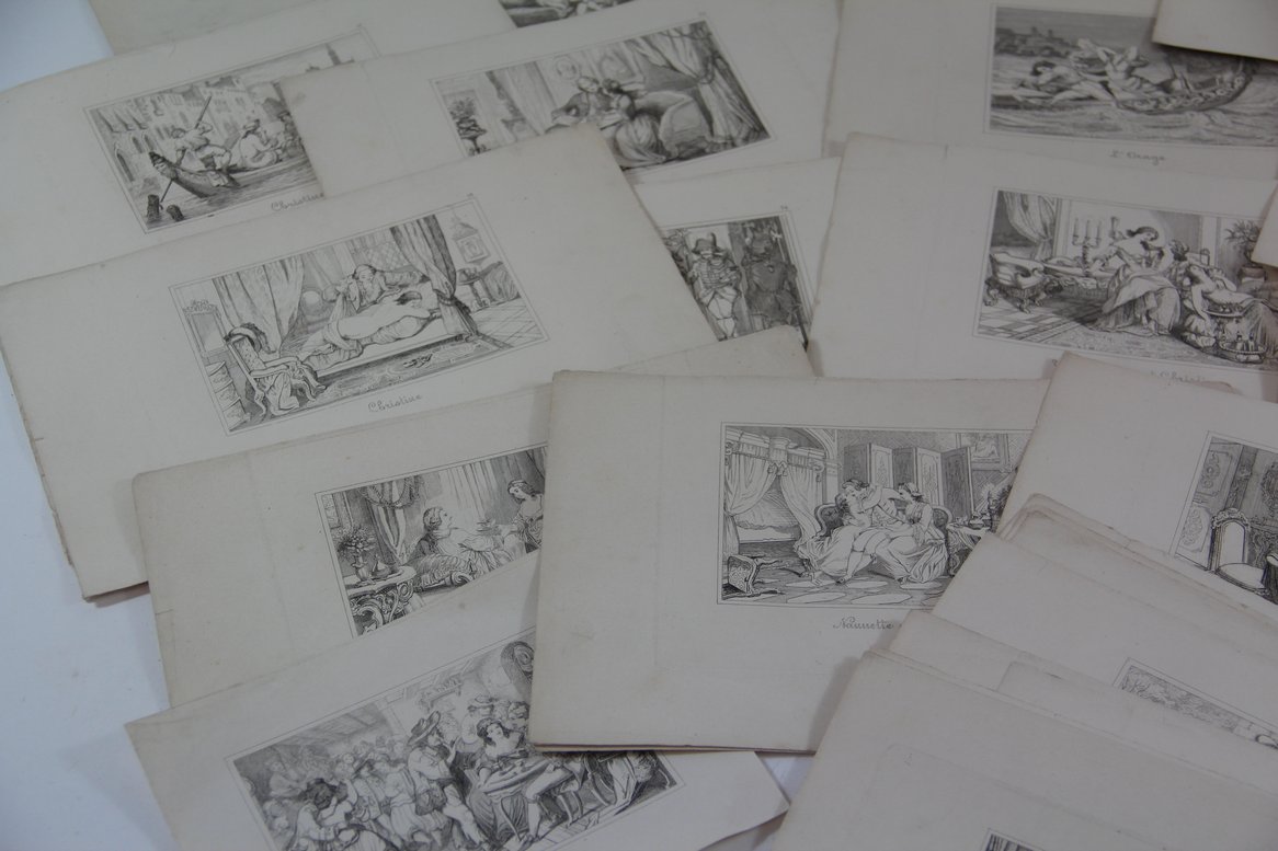 Got a collection of engravings - 39 sheets erotic content <! - ~ 12 ~ -> dedicated to the adventures of Casanova. The size of each image 24.5 by 16.5 . mid-19th century , Western Europe .