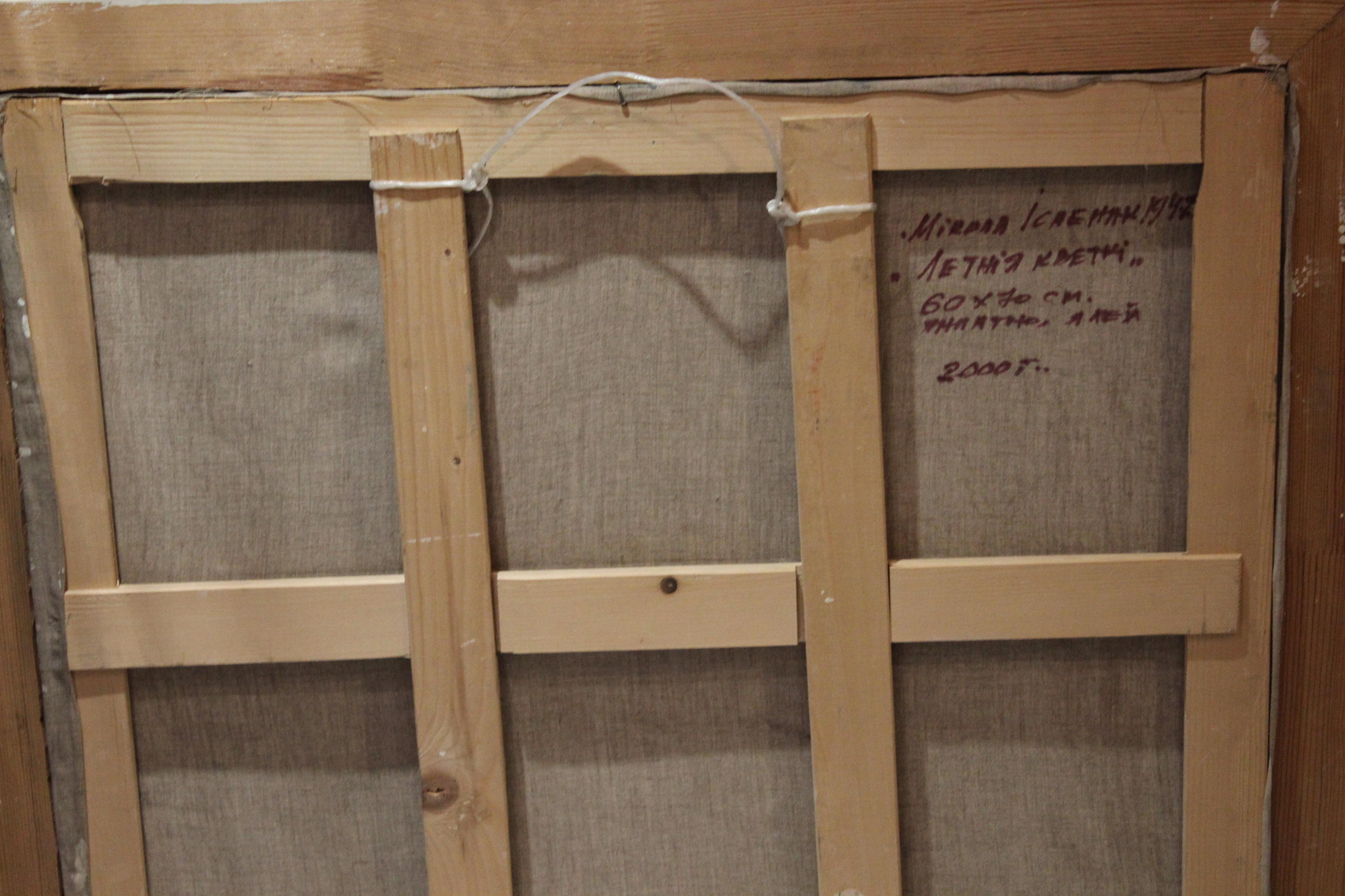 х/м,размер 60/70.1999г.Имя Николая Исаенка занесено в словарь Кембриджского биографического центра (Англия). Основные выставки Николая Исаенка : 1985 г . Выставка советского искусства. Париж, Франция 1992г. «Willianova University». Штат Пенсильвания, США 1997г Международный художественный салон «Центральный Дом Художника». Москва, Россия Персональная выставка. Художественная галерея. Минск, Беларусь 2000г Выставка «Беларусь- третьему тысячелетию». Республиканская художественная галерея «Палац мастацтва» Минск, Беларусь Выставка «Беларусь- третьему тысячелетию» (Второй этап, новые работы) Республиканская художественная галерея «Палац мастацтва» Минск, Беларусь Выставка по результатам планера имени И. Хруцкого. Витебск, Беларусь 2002г. «Galleria di Arte Moderna». Сан-Винсент. Италия Королевский дворец в Калорне. Дворянский зал. Провинция Парма, Италия Выставка посвященная 120- летию Я. Купалы и Я. Коласа. Республиканская художественная галерея «Палац мастацтва». Минск, Беларусь 2003г. Персональная выставка. Библиотека имени Адама Мицкевича. Вильнюс, Литва Выставка международной гильдии живописцев . Художественная галерея «Университет культуры». Минск, Беларусь Персональная выставка. Музей современного изобразительного искусства. Минск, Беларусь Персональная выставка. Выставочный центр «Siera di Milano». Италия Выставка современной белорусской живописи. Национальный банк. Лейпциг, Германия 2004г. Персональная выставка. Выставочный центр Конгрессов Оливетти. Видракко, Италия Персональная выставка. Национальный художественный музей Республики Беларусь. Минск, Беларусь 2005г. Персональная выставка. Галерея имени Г.Прянишникова.Светлогорск, Беларусь Выставка международной гильдии живописцев . Музей современного изобразительного искусства. Минск, Беларусь 2006г. Персональная выставка. Музей современного изобразительного искусства. Минск, Беларусь 2007г. Персональная выставка. Музей современного изобразительного искусства. Минск, Беларусь Работы находятся: Национальный художественный музей Республики Беларусь. Музей современного изобразительного искусства. Минск, Беларусь Могилевский областной художественный музей имени П. Масленикова. Коллекция Белорусского союза художников. Коллекция Союза художников России. Государственная Третьяковская галерея. Москва, Россия Музеи стран СНГ. Музей Людвига. Кельн, Германия. Художественная галерея «Willianova University». Штат Пенсильвания, США. Частные коллекции Беларуси, Франции, Люксембурга, России, Польши, Германии, США, Израиля, Англии, Литвы. |