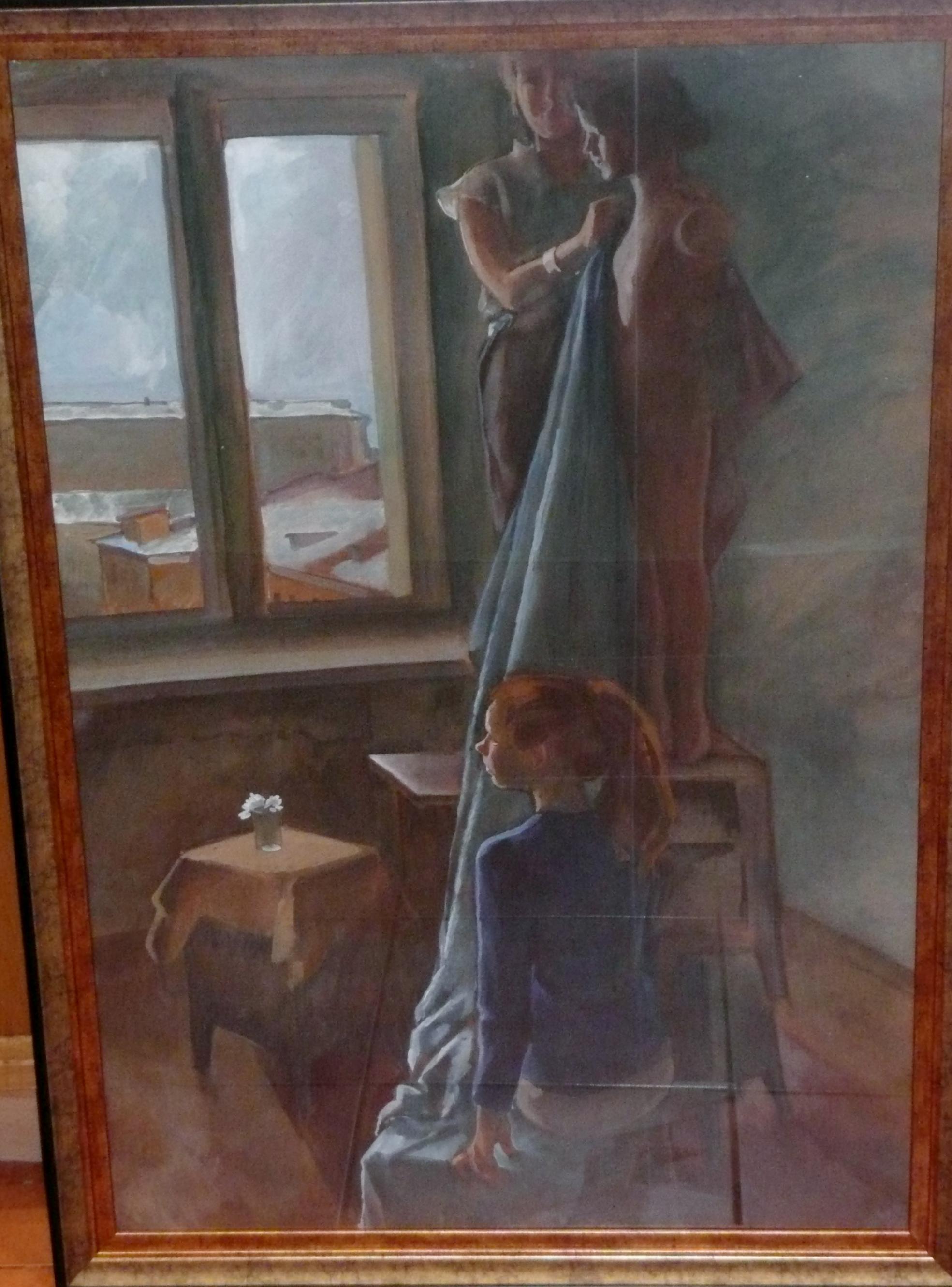 Yes, the work is really under glass, and these bands - highlights, and is not a defect zhivopisi.Sama work in perfect condition. |
