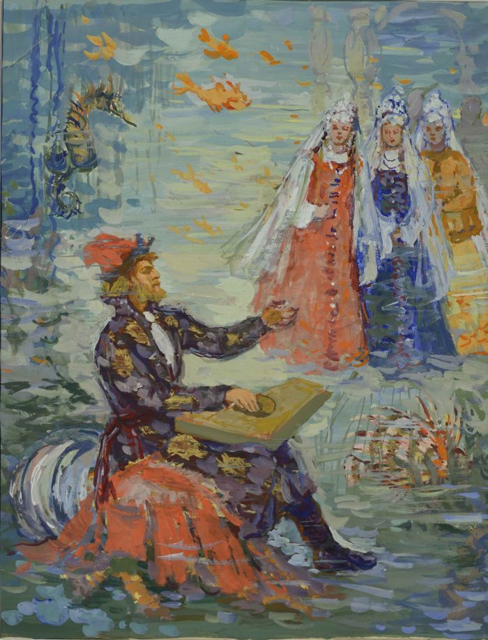 В 20 веке художники часто уходили от свободного творчества в издательскую деятельность, где не было такого жесткого контроля и давления идеологических догм. Отдельный раздел выставки посвящён работам в книжной иллюстрации Александра Бубнова, – художника, имя которого прочно ассоциируется в памяти потомков с эпическим патриотическим полотном «Утро на Куликовом поле», написанным по мотивам русских баллад в разгар великой войны. И в мирное время Бубнов постоянно обращался к темам волшебных сказок, к русскому эпосу. Известен его грандиозный цикл к «Песне о Вещем Олеге». На выставке будут также показаны иллюстрации к другой пушкинской поэме – «Борис Годунов» (1960г.).