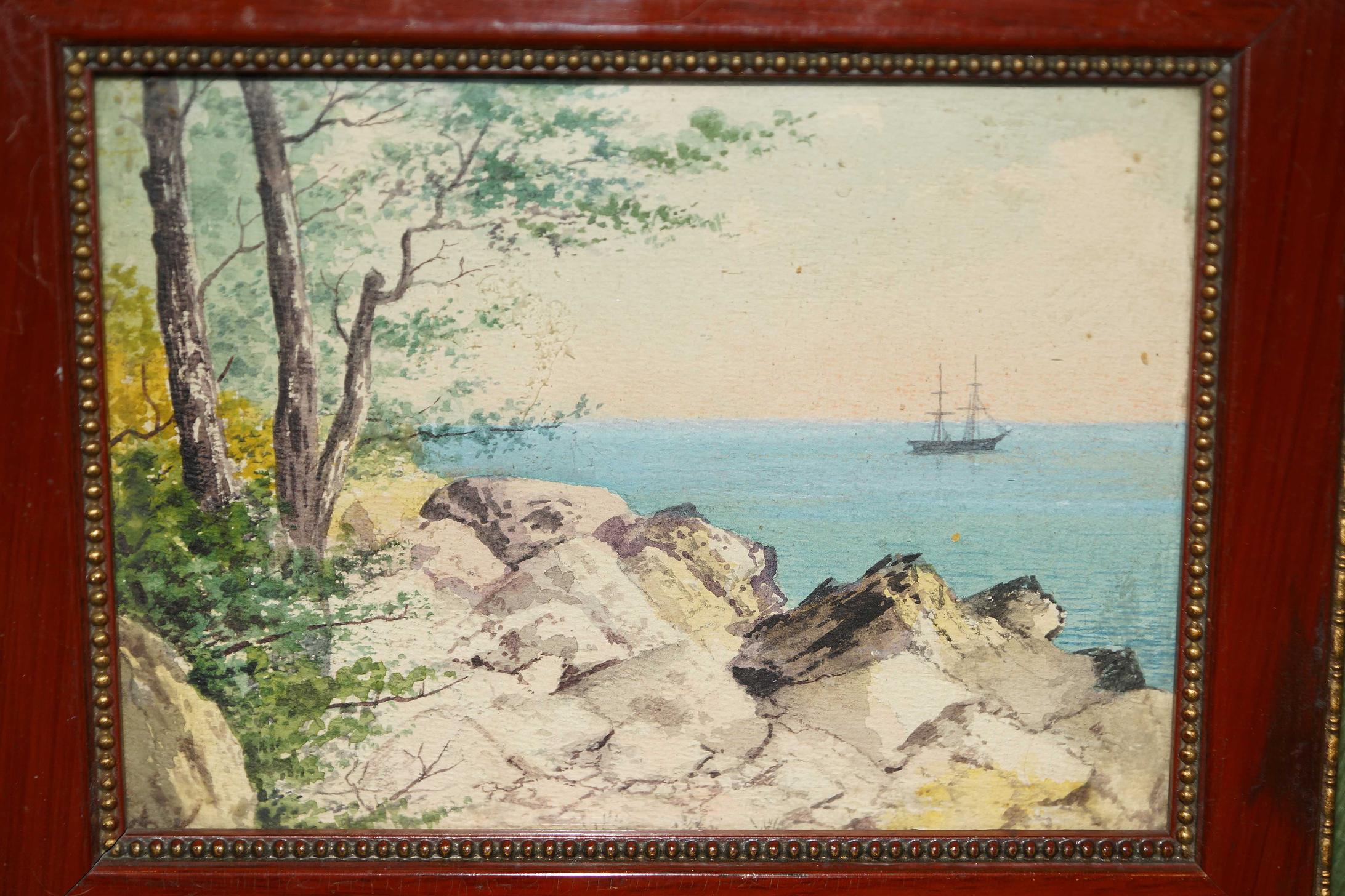 Ф. Клименко, акварель «Крым. Морской пейзаж» в оригинальной раме. Россия, кон. XIХ века.