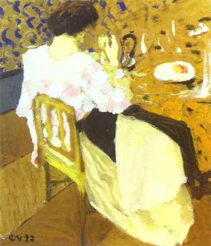 Vuillard piskal trivial everyday domestic scenes, but he managed to give these scenes an unusually intense emotional tension.  Since 1900, he progressively departs from the Nabi style, its more interested in realism. His recent still lifes and portraits of more than academic, but they are full of the typical emotion for him - in the words of the artist, "written by a man - is to try to catch the sigh of time". |