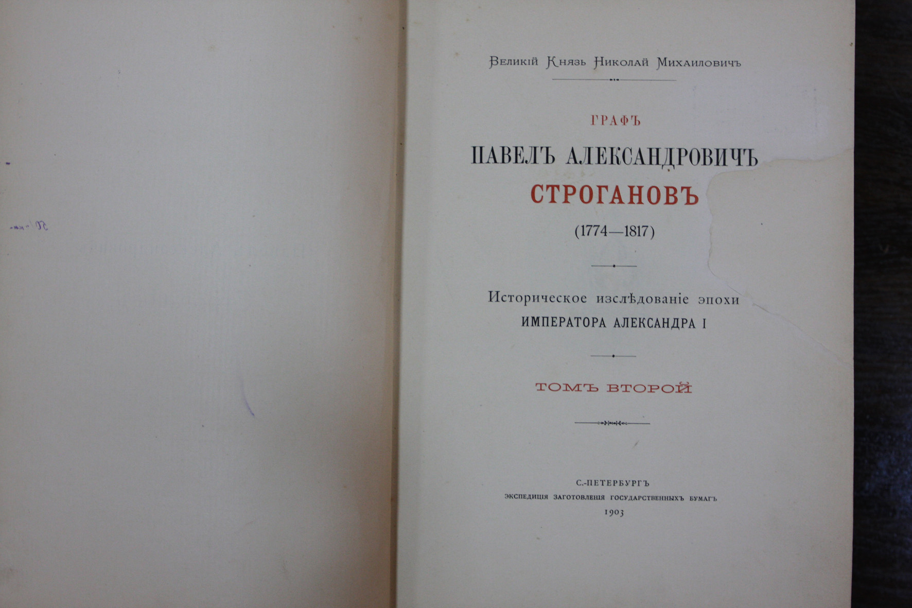 Volume 2, written by Earl PA Stroganov (1774-1817) "Historical research era of Emperor Alexander 1", 1903 St. Petersburg Thank you |