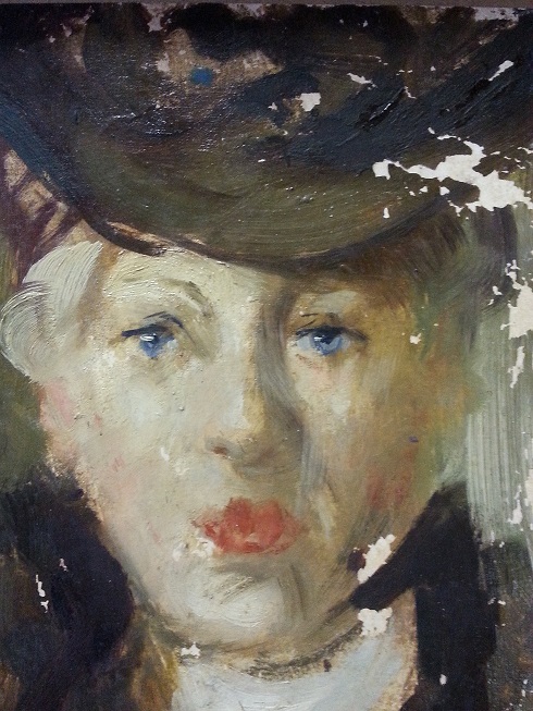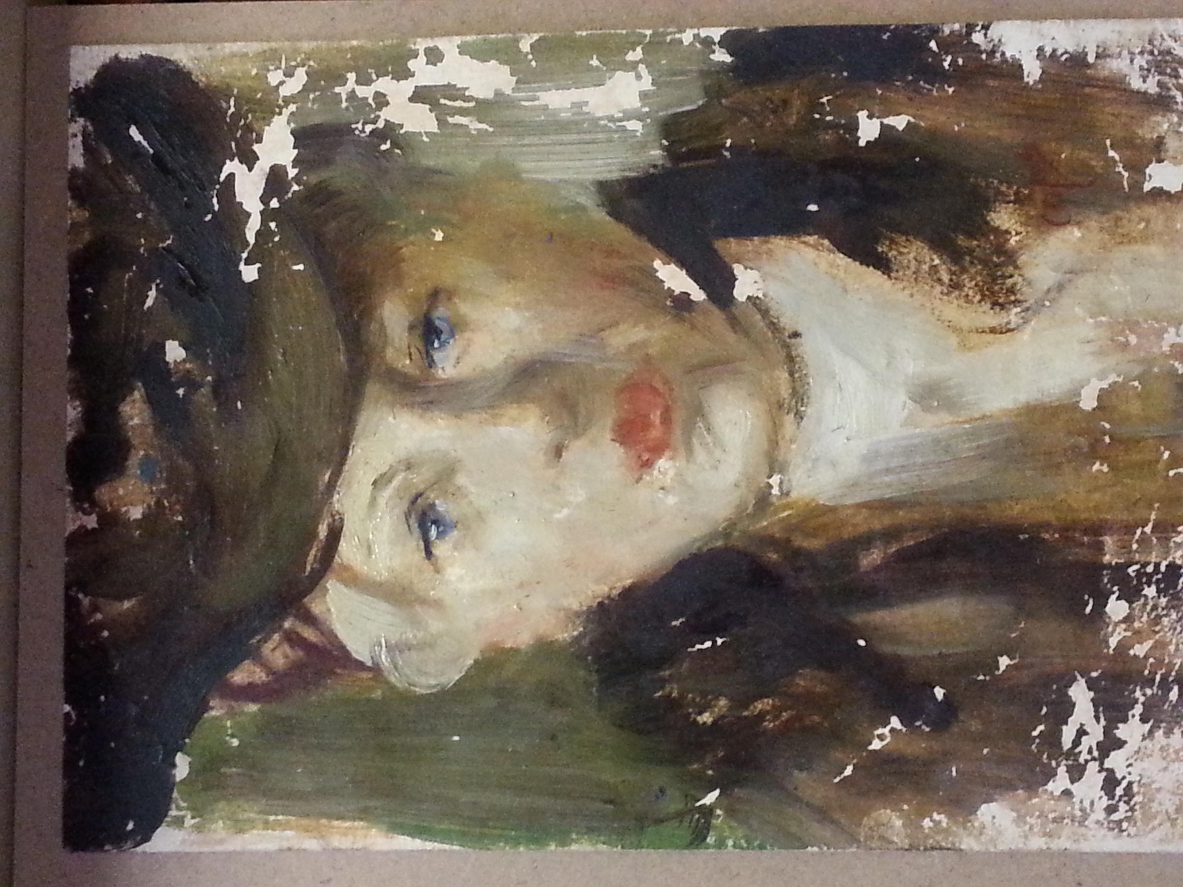 не большой портрет на бумаге маслом был наклеен на картон может ли эта работа принадлежать Валентину Серову очень большие утраты красочного слоя.Спасибо за помощь