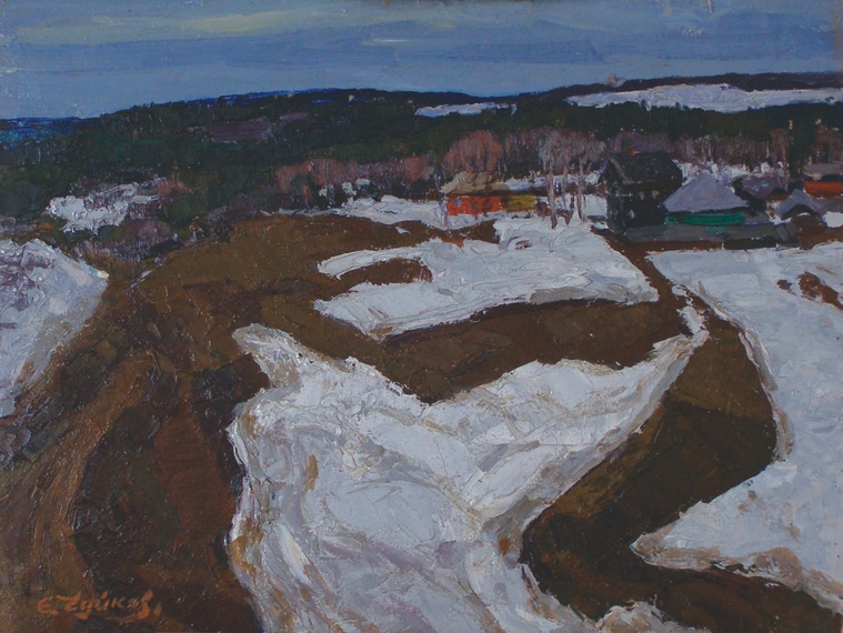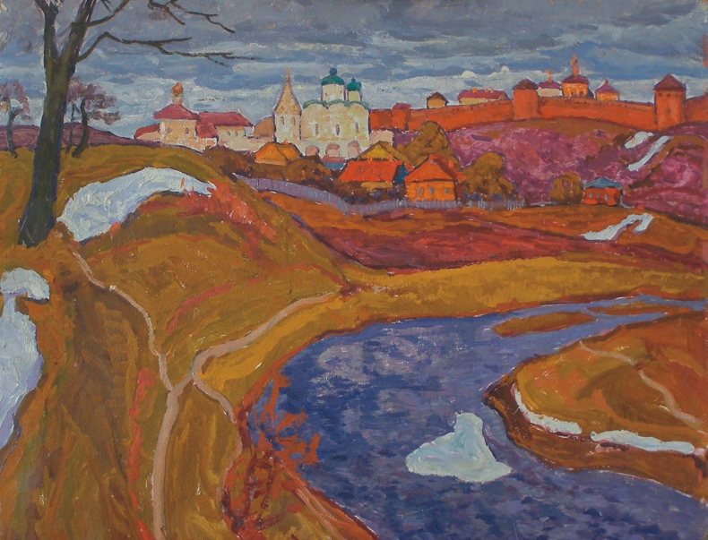 Born painter in the distant 1924. Before the war, visited the studio of art Zaporizhzhya Palace of Pioneers. The diligent student, he wanted to continue their education in art school. However, soon the Great Patriotic War, which forced instead of paints and brushes to take up arms. After demobilization, the boy was lucky to meet with the teacher and mentor GS Kolosovsky, who played a prominent role in shaping the career of a young artist. 1950 was a landmark in many respects to Yevgeny Vasilyevich. It is currently held the first exhibition of works by the artist, and in 1957 he became an active participant in national art exhibitions. Besides creativity, he was engaged in organizational activity, stood at the origins of the Zaporizhia regional organization of the Union of Artists, was the first of its head and yet repeatedly elected to this position. Topics of the artist's work largely determined his love and a sincere passion for the works of A. Pushkin. His canvases Pushkin Reserve. Mikhailovskoe "," Mihailovskaya distance "the artist wrote inspired by the works of his favorite poet. Also creative genius of literature devoted to Russia's numerous sketches created during travels in Pushkin places. EV Chuykov always welcomed visiting historical places of Russia: Suzdal, Vladimir, Siberia, the Great Ustyug, Smolensk, he admired the works of I. Levitan, and VA Zhukovsky. Hence the huge number of paintings that depict the beautiful historic monuments of ancient Russian architecture: the white-stone churches, temples, the bell tower. Each painting in this series immerses the viewer in thoughtful contemplation and fanned by stories of past centuries ... " |
