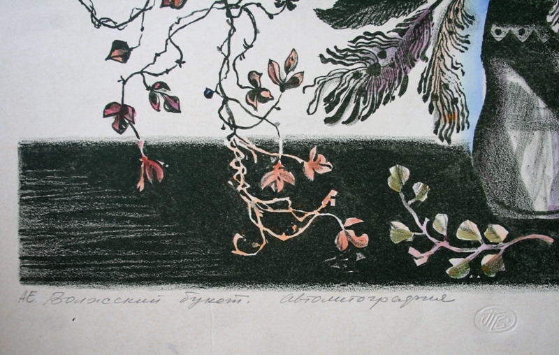 В.М. Пашкевич, цветная автолитография "Волжский букет" 1992 г., 57,5х65 (лист), 42х50 (изображение).