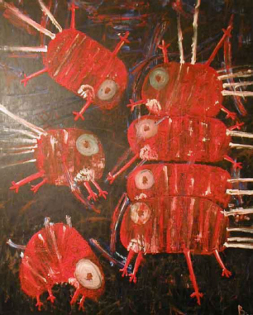 1. Получай, фашист, гранату! 2006. Х/м. 50 х 70. 2. Поход мандавошек на Париж. 2002. Х/м. 70 х 98. Частное собрание (Мюнхен). 3. Утро брокера. 2000. Х/м. 150 х 119. Частное собрание (Минск). 4. Магия света. 2001. Х/м. 40 х 70. 5. Креветки. 2001. Х/м. 70 х 107. 6. Ольга Гапеева среди литераторов. 2002. Х/м. 50 х 70. 7. Твои пчёлы. 2002. Х/м. 40 х 70. 8. Слон. 2002. Х/м. 45 х 75. Частное собрание (Прага). 9. Предчувствие зимы. 2001. Х/м. 70 х 106. Частное собрание (Минск). 10. Литераторы на пленэре. 2005. Х/м. 50 х 70. Митинг за права человека. 2004. Х/м. 30 х 40. Пляж, море и ты. 2004. Х/м. 30 х 40. |