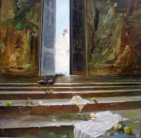 We must rejoin the world, and the process will go as creative. If you have something to tell you, you learn to express it. And then in the academic study you can see for yourself what you lack - the ability, skill, paint that does not work. And if a person has nothing to say, it is already beginning to engage in no creativity and inventiveness, not as he does not like this. And how is art in the world? Do as anybody, tell her. You will be like no. Voice of fact at all at birth is different. Even the size of a shoe is different. How do we know a man? Is he trying to be different from others? He was born unlike! If he starts to try to be different from others, he becomes like the others. Becomes mass. Masson, try to be unlike any other. So I do not know how ... The less an artist "paritsya" this process, more than he sees - "contemplating the visible, we understand sacred. We are not the inventors, we are not going to entertain anyone and play these games: "Ooooh! This painting sells for millions, so let's do it! "This is not a bazaar, where one made the potatoes, and everything - apples. And the potatoes are very expensive. The next day - all pulled out the potatoes. And she lies. This massive western twist, the market approach to art. And what could be the market relations in the arts? What might be the market love? But that's nonsense. May God give you love as you love yourself. That such a concept that's ours, behind the scenes.