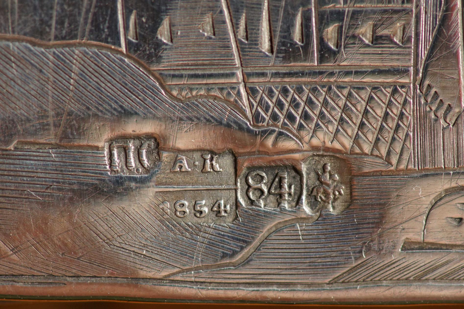 Материал: серебро "84" пробы. Техническое исполнение: литье, гравировка, золочение, пайка, монтировка. Клейма: «84» пробы, городской герб Москвы "Георгий Победоносец", мастера "П.О" (Павел Акимович Овчинников), пробирного мастера "А.К" ( обер-бергпобирера, Ковальского Андрея Антоновича) над датой «1854». Размеры: Высота – 12 см. Ширина - 6 см. Глубина - 3 см. Вес - 140 граммов. Изысканная работа, отличное состояние. МУЗЕЙНОЕ КАЧЕСТВО! Предметы данного мастера хранятся в коллекции ГИМ. Предмет представляет антикварный, коллекционный интерес. Цена договорная. Все детали и доп. фото по эл. почте: arz-wien@rambler.ru Последний раз редактировалось Алексей Романович; 08.06.2014 в 17:14.  |