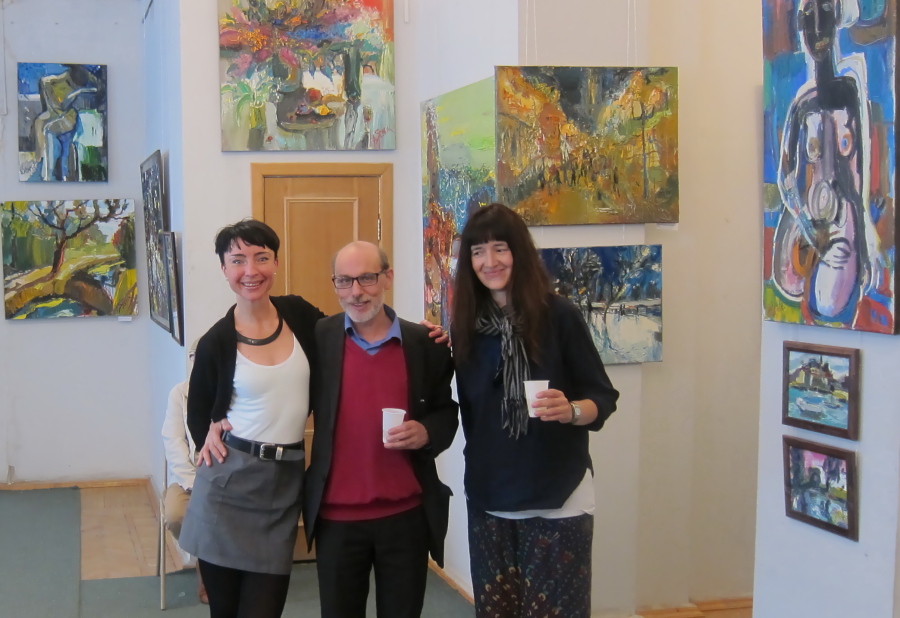 На открытие выставки Елены Старик пришёл давний почитатель таланта художника известный хирург и коллекционер Михаил Алшибая...В его коллекции около десятка абстракций Алёны...Ему видно ближе эта сторона творчества Старик...Также на фото видна известная художница Вера Ельницкая, лучшая подруга Алёны...