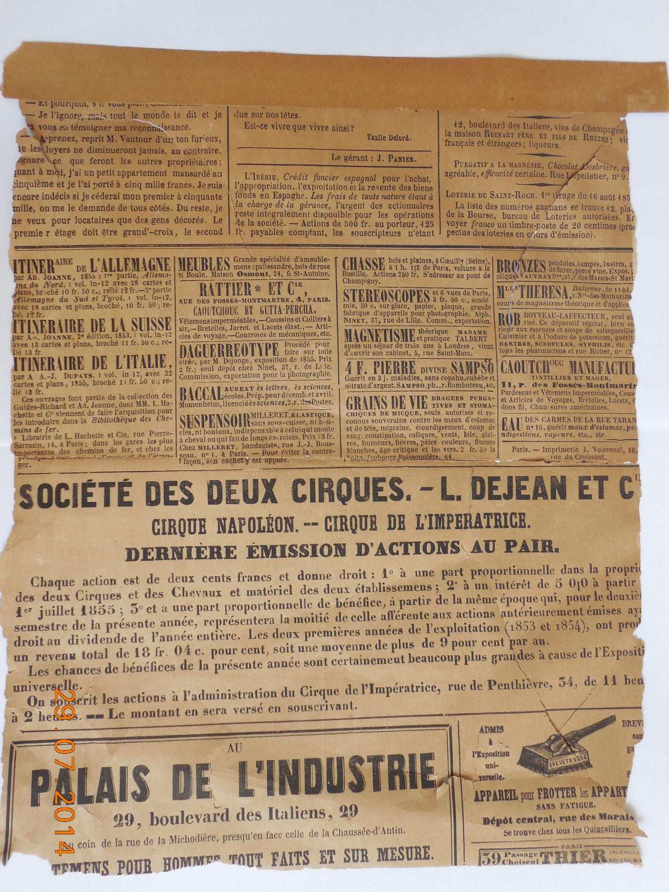 Литография на газетной бумаге,на обороте статья на французском с датировкой 1855г.