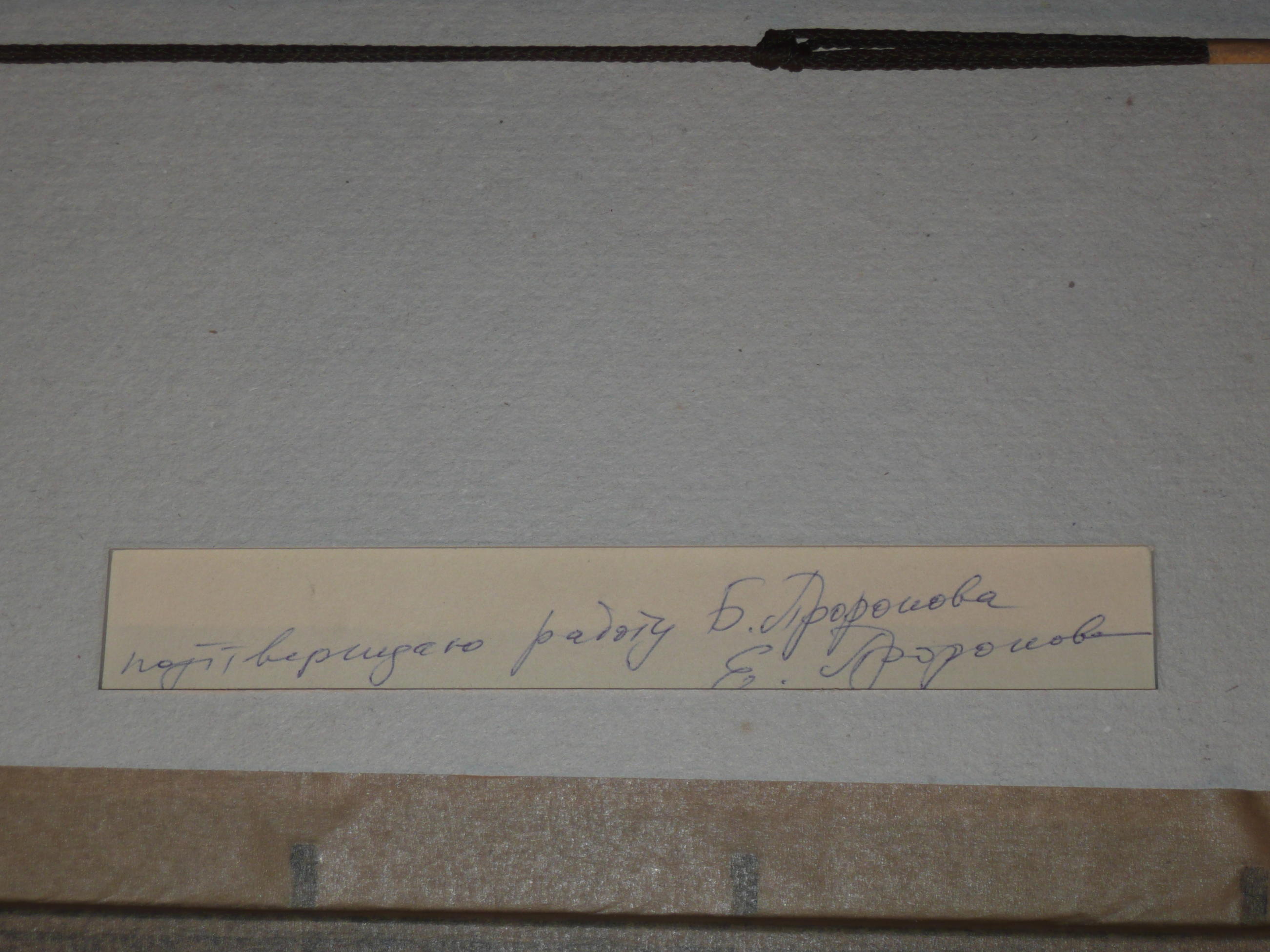 Бориса Ивановича Пророкова.Работа написана в 1936г.,бумага,тушь,перо, 38х28см. Пророков Борис Иванович (1911, Иваново-Вознесенск - 1972, Москва). Народный художник СССР (1971), член-корреспондент АХ СССР (1954). В 1929-1931 гг. учился во ВХУТЕМАСе-ВХУТЕИНе у Н.К. Истомина, П.Я. Павлинова, Н.А. Удальцовой, Д.С. Моора. Сотрудник газеты "Комсомольская правда" (1931-38), журналов "Смена" (1929-1937) и "Крокодил" (с 1938). Во 2-й половине 40-60-х гг. создал наиболее значительные работы - тематические серии станковых рисунков, по размеру приближающихся к плакату и посвященных борьбе народов за мир, против империалистической агрессии и реакции, социального и расового неравенства. В 1952 г. был удостоен Государственной премии СССР за серию работ «Маяковский об Америке». Серия «Это не должно повториться!» была удостоена Ленинской премии в 1961 г. В 1981 г. в Иванове был открыт дом-музей художника. Работы художника находятся в ГТГ, ГРМ, во многих региональных музеях, а также в частных коллекциях в России. |
