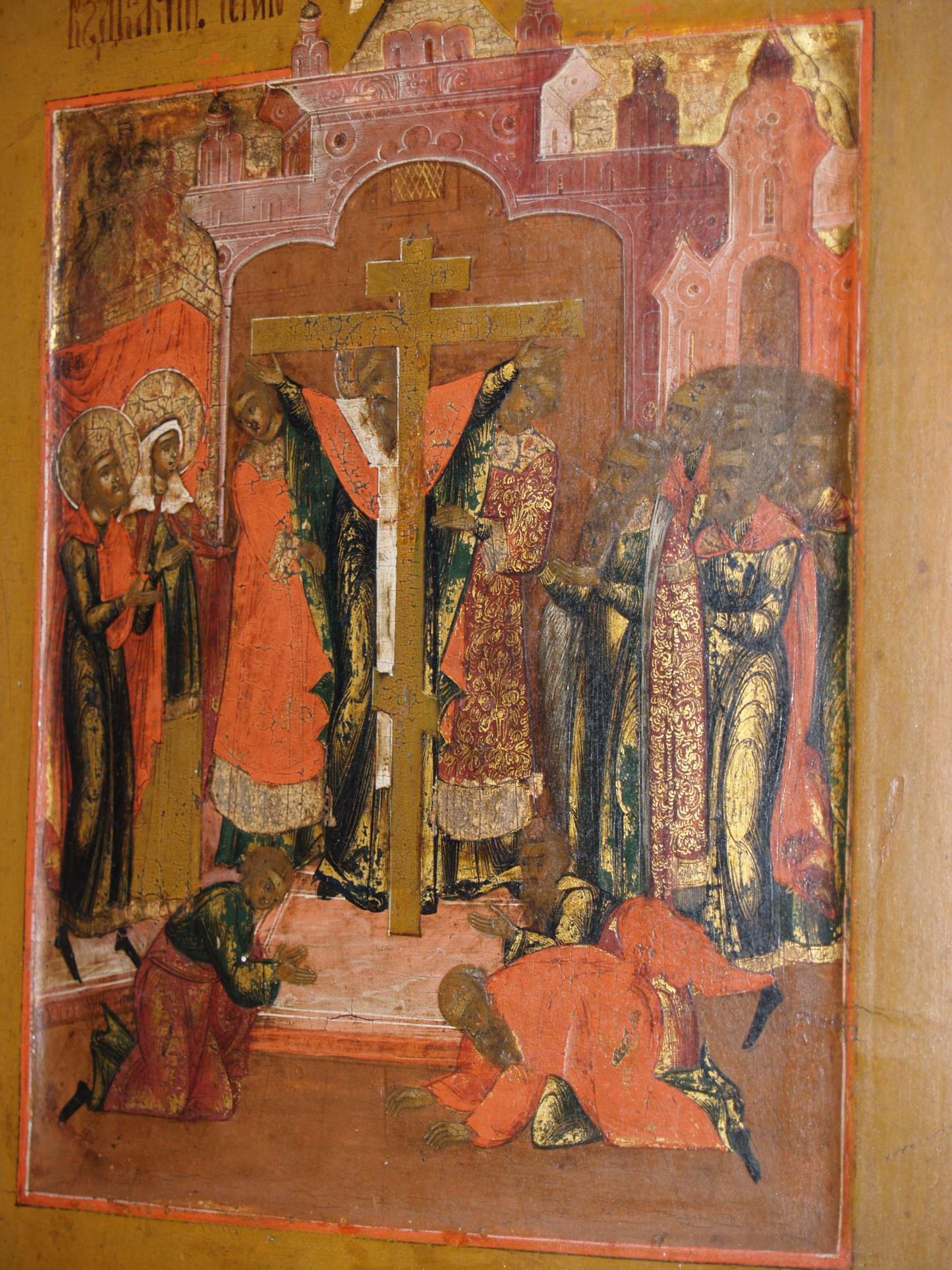 Большой храмовый образ Воздвиженье Честнаго Животворящего Креста Господня, Российская Империя, XIX век.