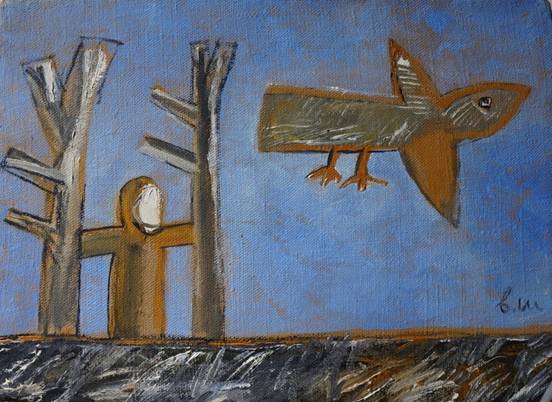 Здравствуйте! Продам картину Владимира Шинкарева "Улетающая птица", х.м., 1998г., 30х40см