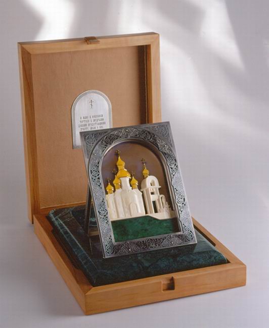 1. Gravity of love. Materials: silver, gold, diamonds, rubies, petrified wood. Work exhibited at the Metropolitan Museum and the National Arts Club, New York, USA in June 2008, Mr. 2. Guardian Angel. Materials: gold, amethyst, silver, spinel, diamonds 3. Happiness. Materials: gold, amethyst, silver, stand - agates. 4. Torch. Materials: gold, silver, fire opal, Morion. 5. Church of St. Paraskeva. Materials: gold, silver, Ukrainian amber, mammoth ivory, agate, jade, marble. 6. Virgin Semistrelnaya. Materials: gold, diamonds, sapphires, topaz, aquamarine 7. Necklace "Paradise Garden". Materials: Gold, compartmental hot enamel. 8. Dance angel. Materials: gold, diamonds (837 pcs.) 9. Soul of the World. Materials: Silver, gold, diamonds, sapphires, star-shaped sapphire - 28 carat, spinel, rauhkvarts, lapis lazuli, jade. 10. Dandelion. Materials: gold, jade, crystal. |