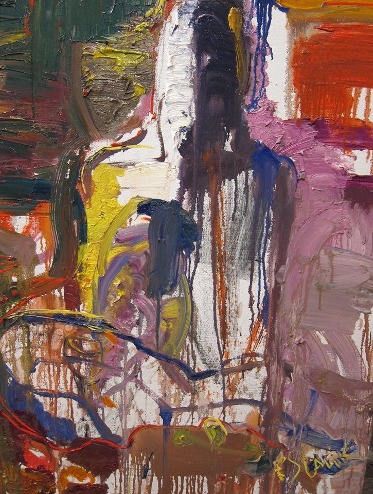 Елена Старик в процессе работы над холстами больших форматов...
