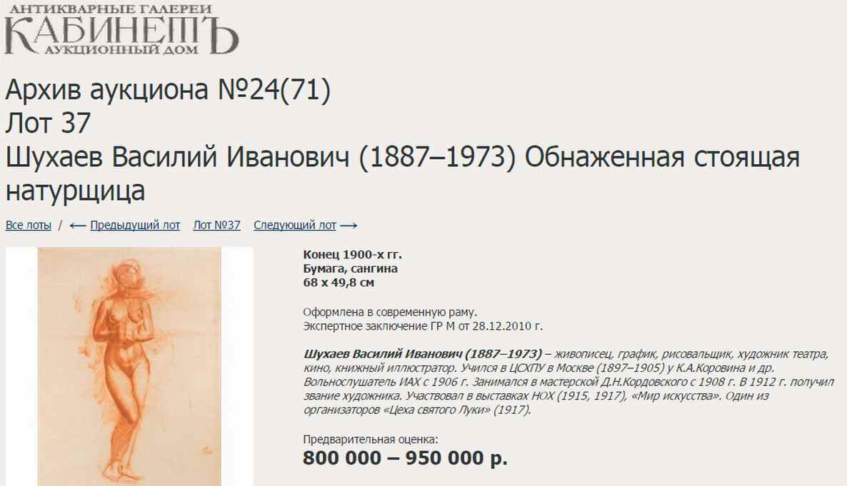 Hello! I do not presume to judge the authenticity of this work. I recently sold Shukhaev but the price apparently was not satisfied with the seller. Asked 90 sput. rubles. On Sovkome sold a lot Shukhaev - but that was long ago and the prices in my opinion are a bit high.