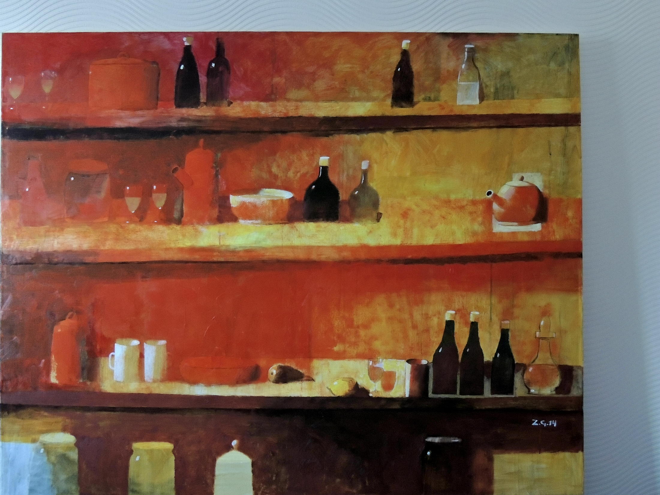 1. Стол, х-м, 100x130, 2013 2. Деревья, х-м, 45x35 2010 3. Мистерия, х-м,118x178,2014 4. Город, х-акр, ,80x50,2014 5. Желтый натюрморт,х-м , 120x140 .2014 |