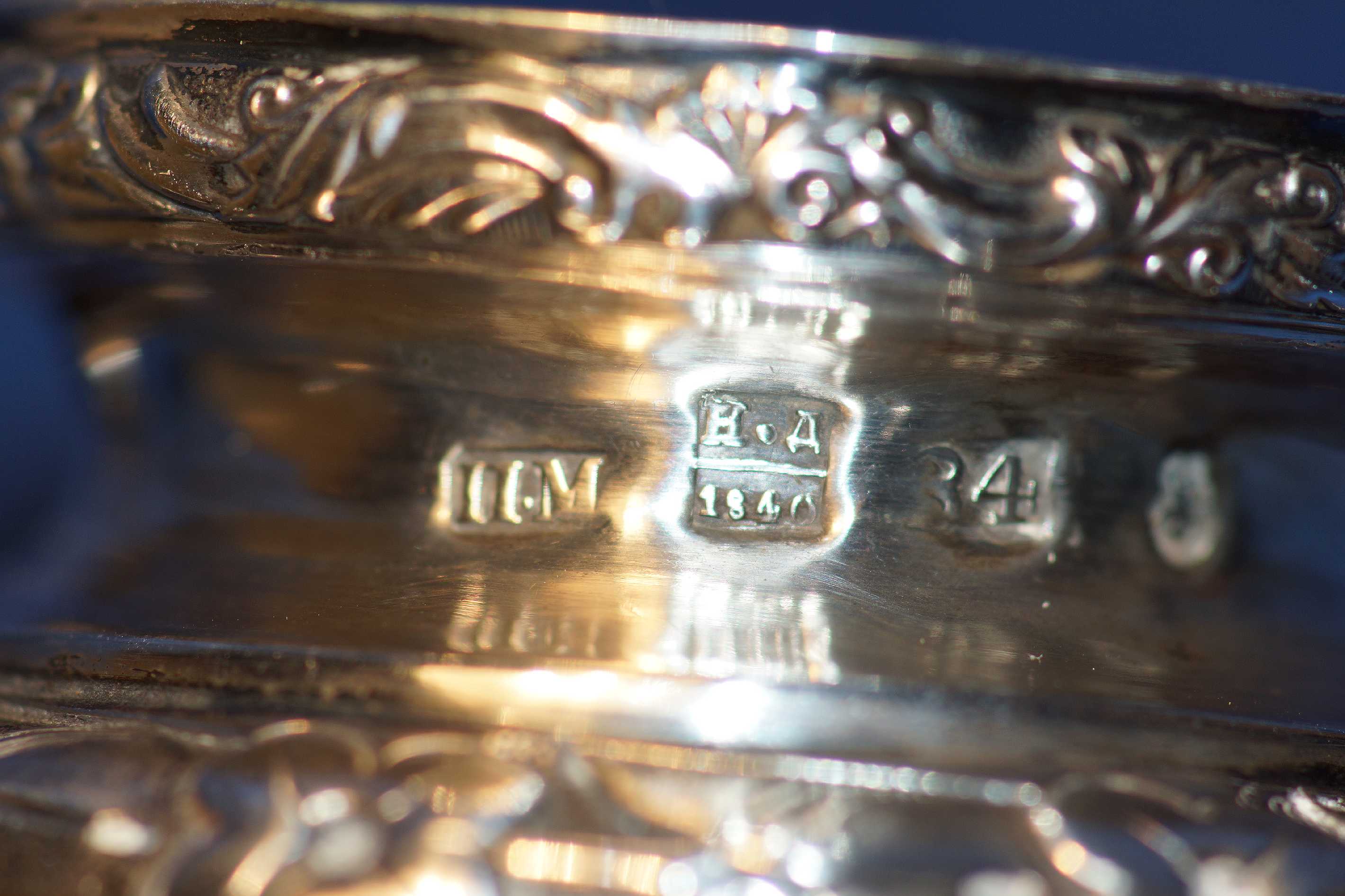 Материал: серебро «84» пробы, литье, прочеканка, ручная гравировка штихелем, канфарение, шлифовка, пайка, монтировка. Вес – ок. 200 граммов. Размеры: Высота лампады – 11,5 см. Диаметр лампады – 14 см. Длина цепи – 41 см. Клейма: «84» пробы, городское клеймо Москвы, именник мастера «П.M», пробирного мастера «Н.Д» (Обер-контролер проб, берггауптман 6 класса, Дубровин Николай Лукич, работал в Москве в 1822-1855 гг.) над датой «1840» в прямоугольнике. Изысканная работа, отличное состояние. Цена договорная. Все детали по эл.почте: arz-wien@rambler.ru |