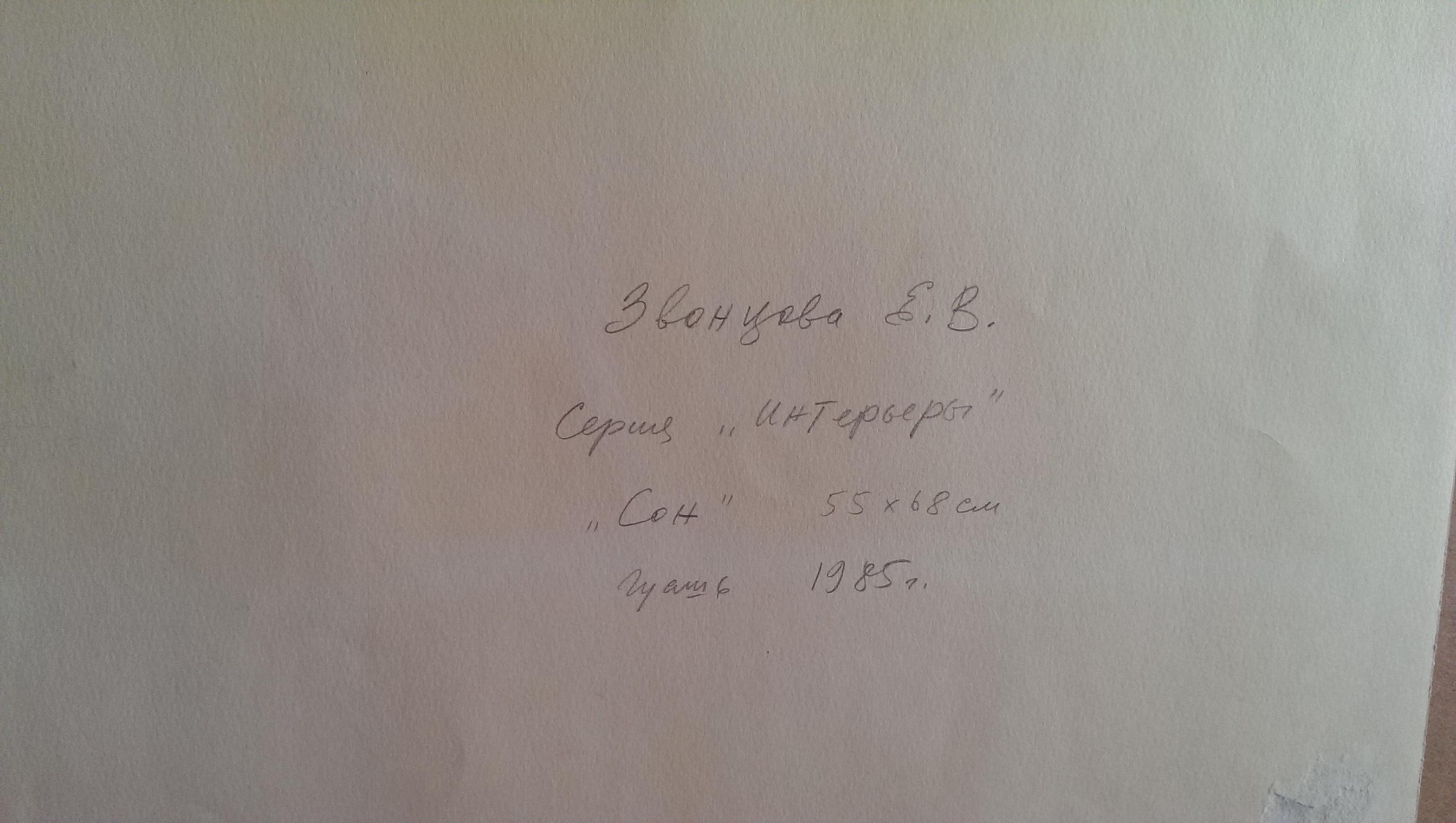 Родилась в семье художников Звонцова Василия Михайловича и Рудницкой Марии Леонидовны. В 1972 году закончила графический факультет Института им. И.Е. Репина по мастерской станковой графики под руководством А.Ф. Пахомова. _______________________________________ 1. "Сон". Серия "Интерьеры". 1985 г., гуашь. (55х68) 2. "Вечер". Серия "Интерьеры". 1985 г., гуашь. (55х68) |