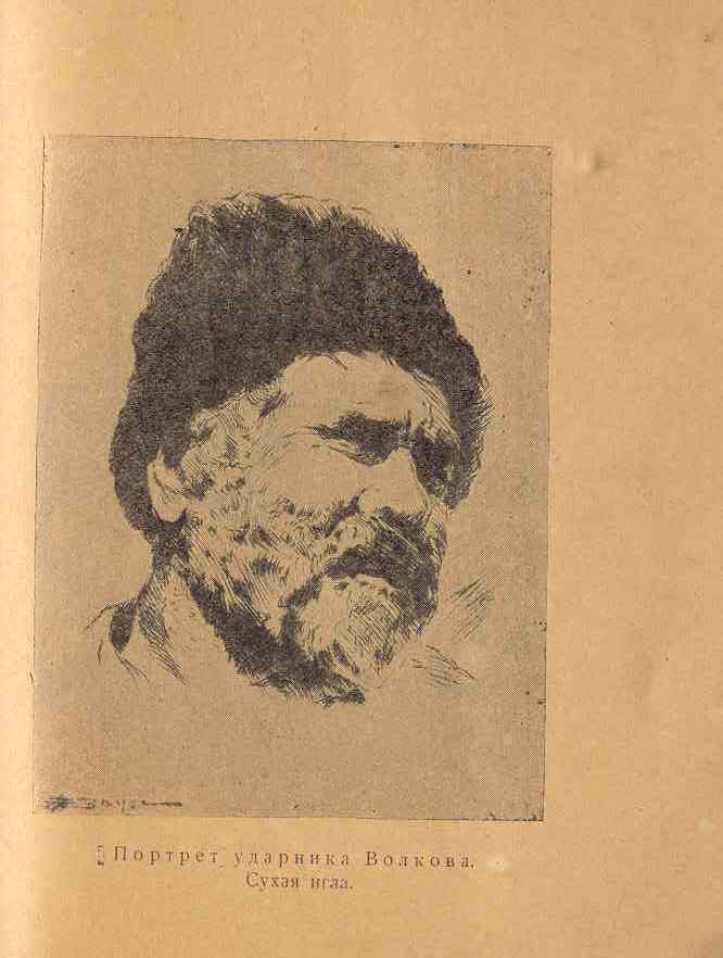Gradually the artist expands the thematic range of his works, drawn to the themes of collective village, socialist production and, finally - the portrait. The biggest success he achieves in his series of portraits of shock and Stakhanovites village, artists and public figures. This is mainly the head of a large size, made in the manner of a dry needle or soft enamel. The portraits of a lot of expression and given a significant response ( "Drummer Volkov" - drypoint, "Portrait of the sculptor Yakovlev, soft ground, etc.).