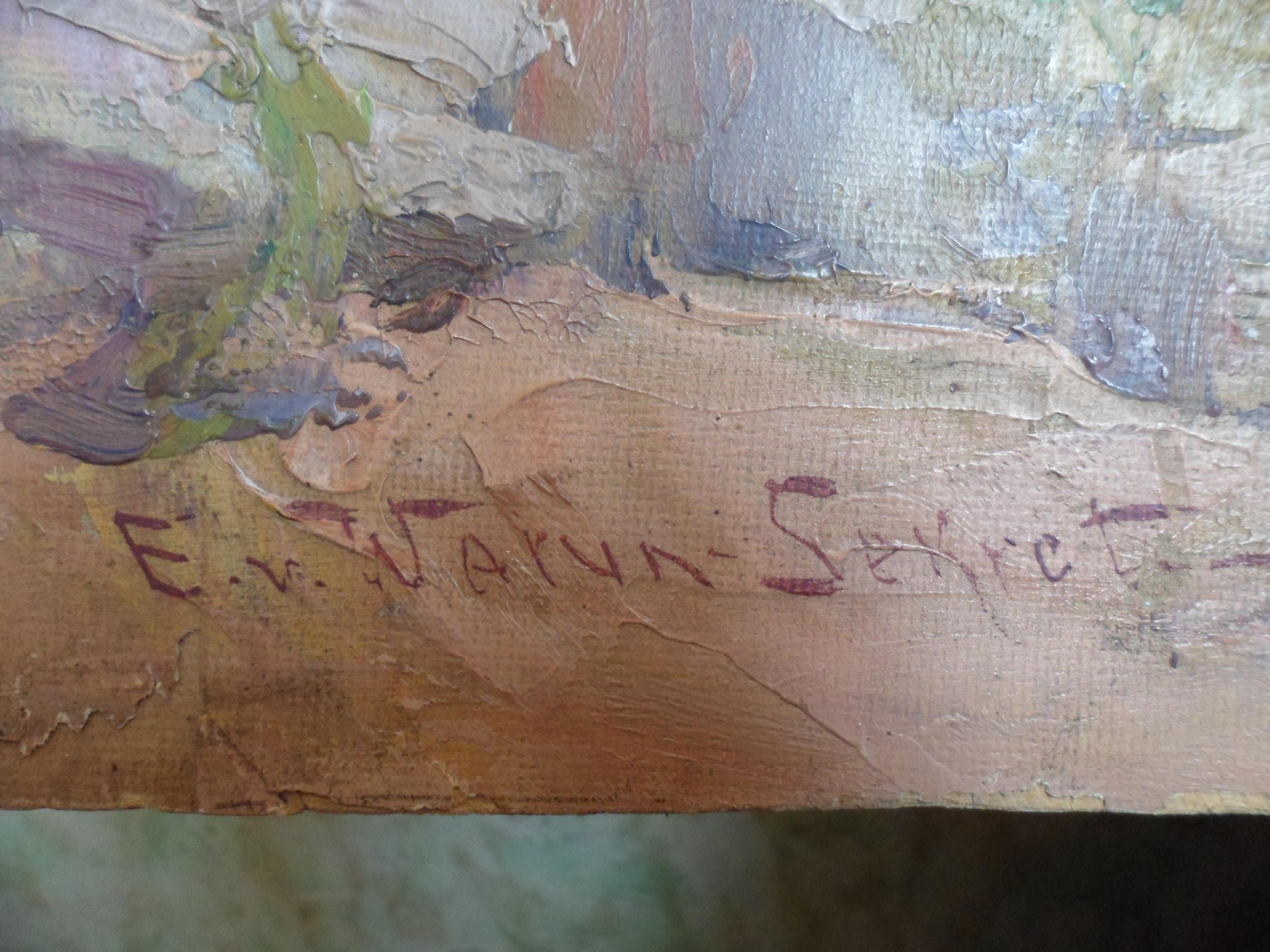 В Германии, на eBay, при старте с нуля вероятно эта работа не дотянет и до 100€. Продажи на аукционах последние годы были, были ли это реальные продажи, вот в чем вопрос. Художника таки Евгений звали, - мужчина он был) Его самая лучшая работа в интернете висит на eBay уже несколько лет: http://www.ebay.de/itm/Eugen-VON-WAR...-/271211769257 Вполне симпатичная вроде. |