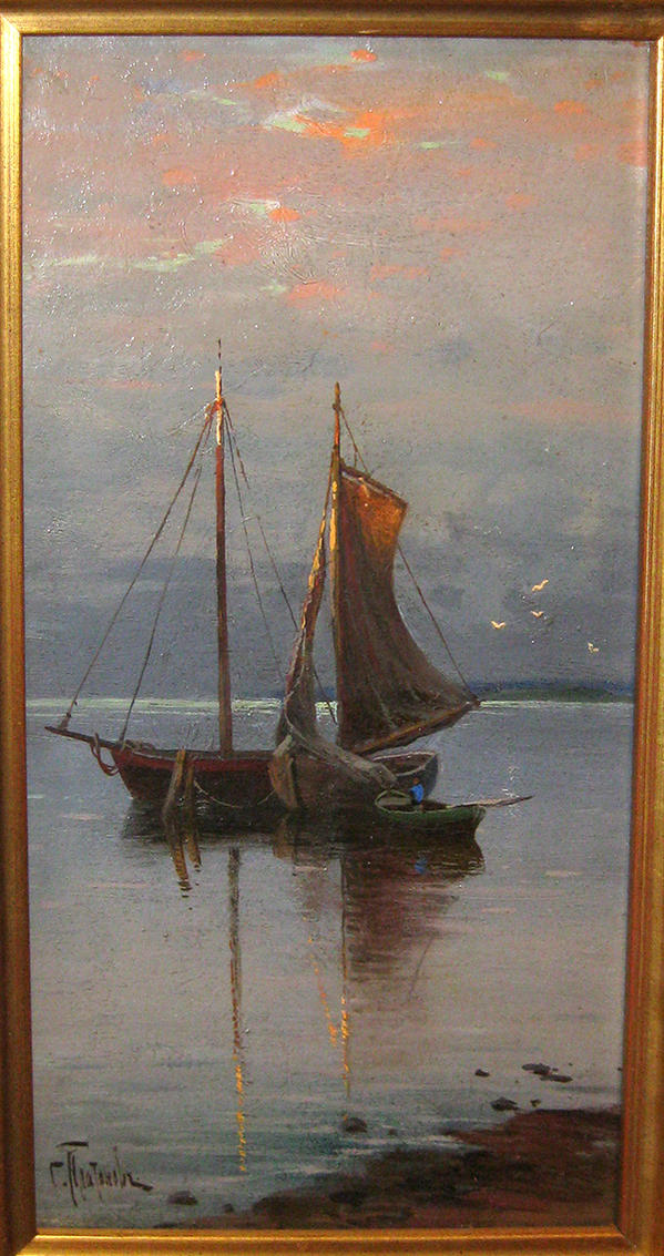 Семён Платонов ( 1860-1925) «Парусники», картон, масло, 39.5 х 20 см., Россия, кон. XIX века.