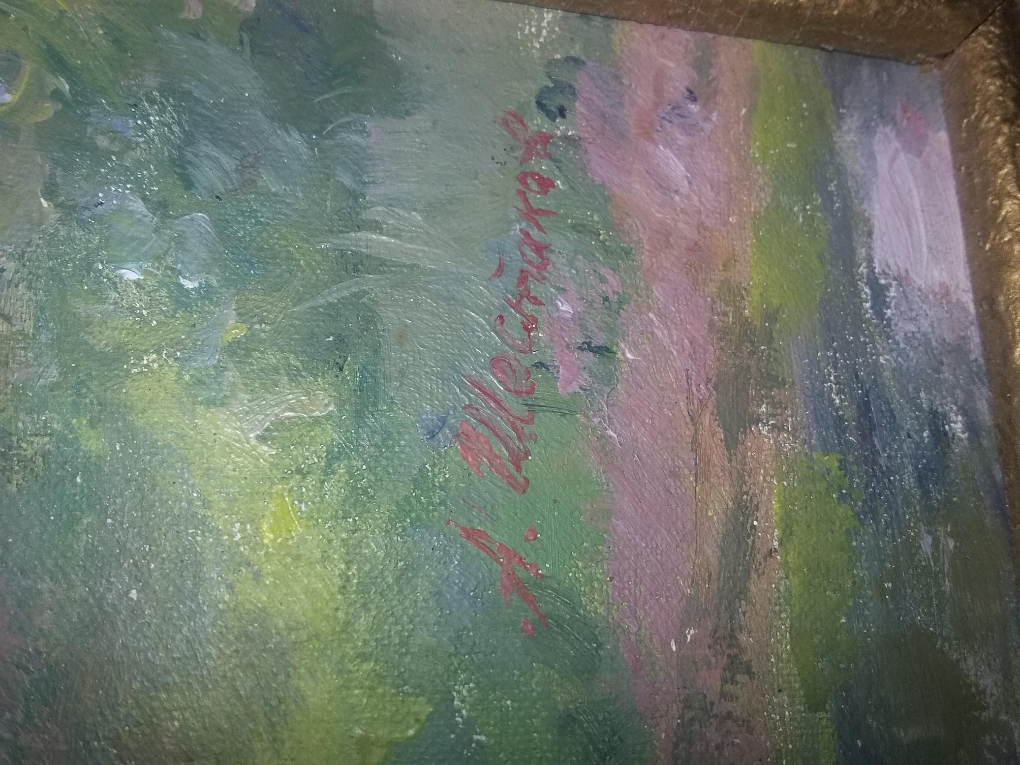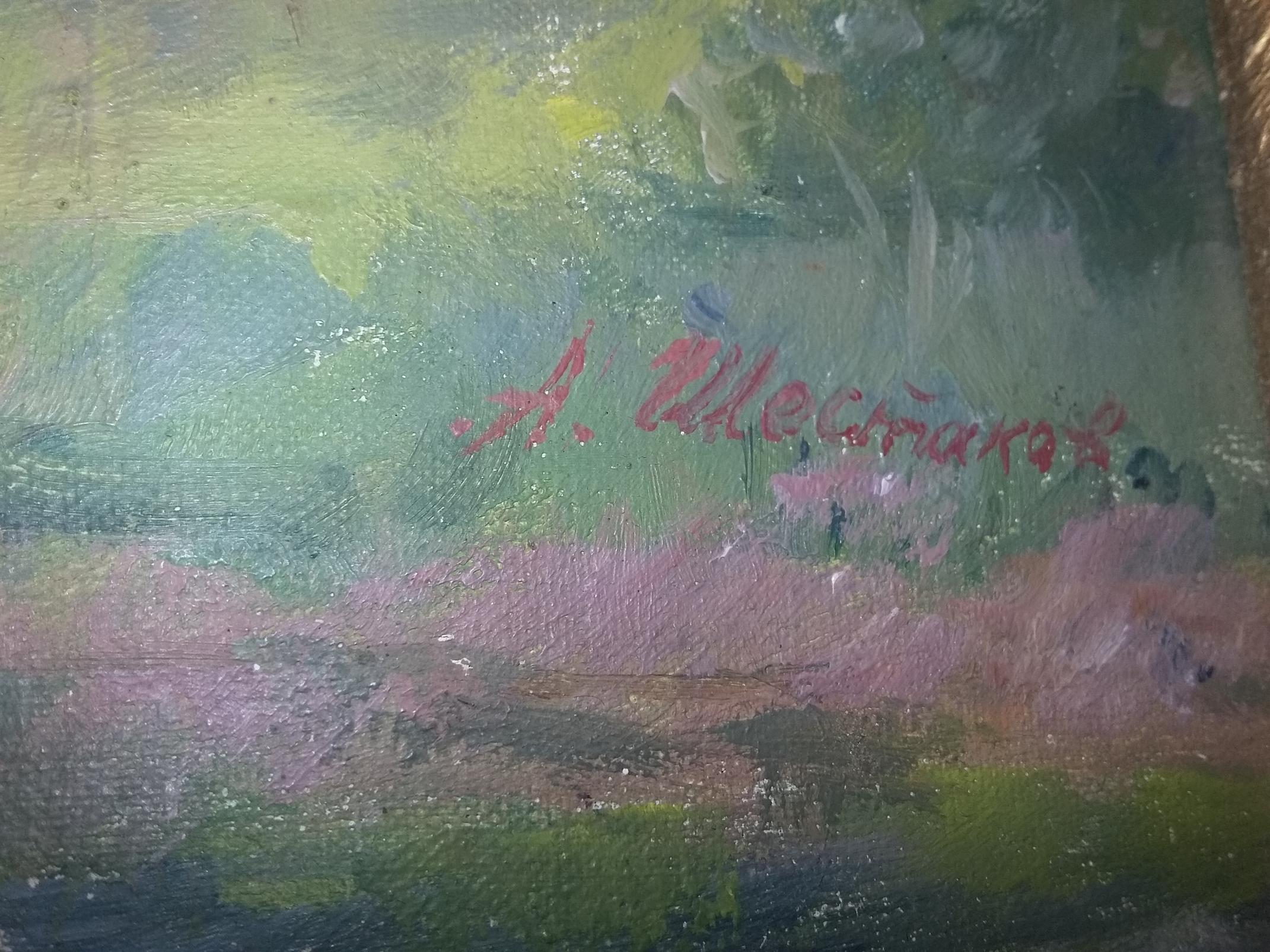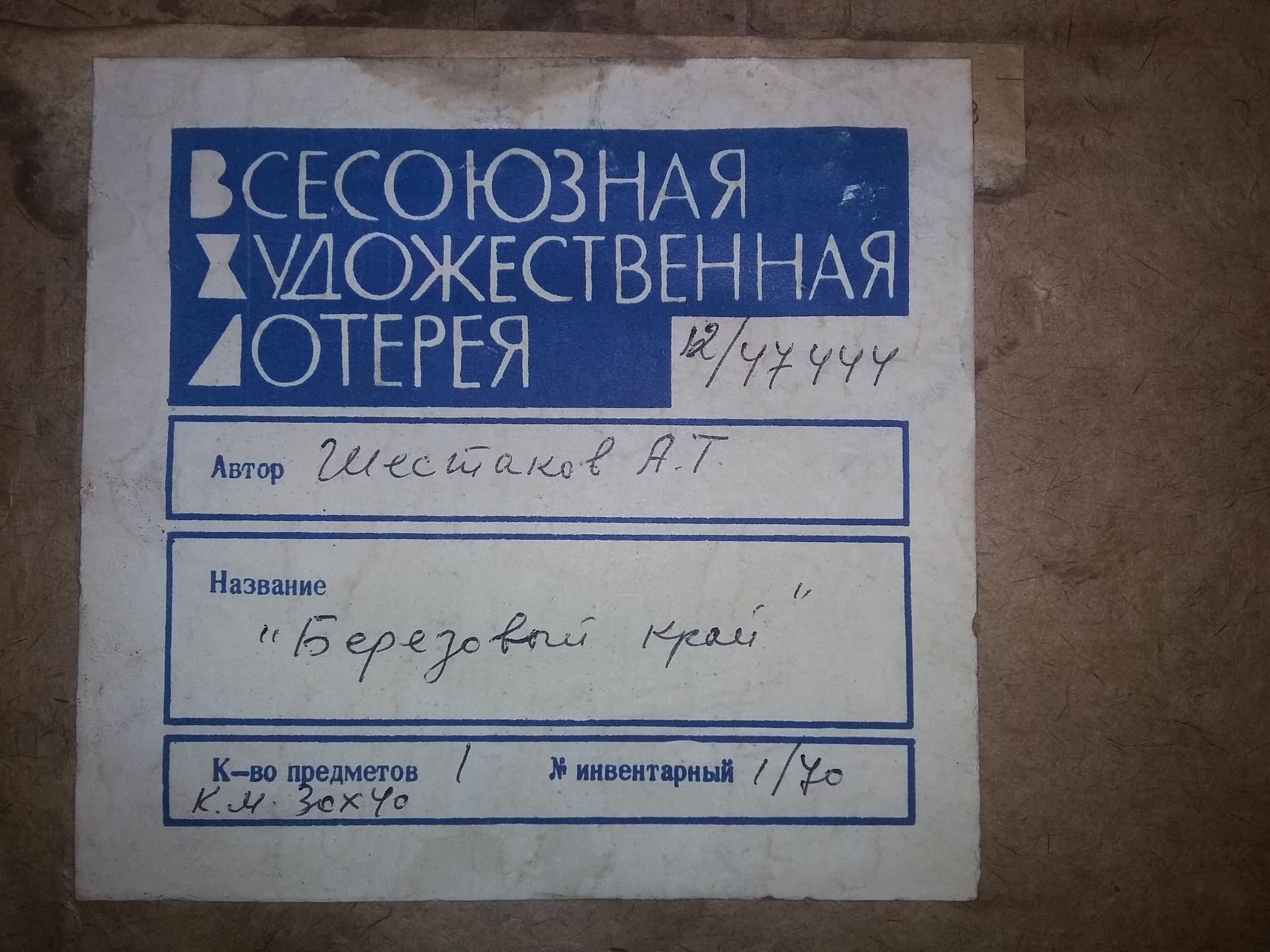 Картина "Березовый край", автор известный беларусский художник Александр Тимофеевич Шестаков г.Минск. Картина участница всесоюзной худож. лотереи, есть бирочка на обороте. Размер картины 38*47см, масло на двп-оргалите. Знаю, что выставки этого художника проходили в России, Беларуси, Италии, Франции, Польше, Японии и Германии. Помогите, кто что думает.