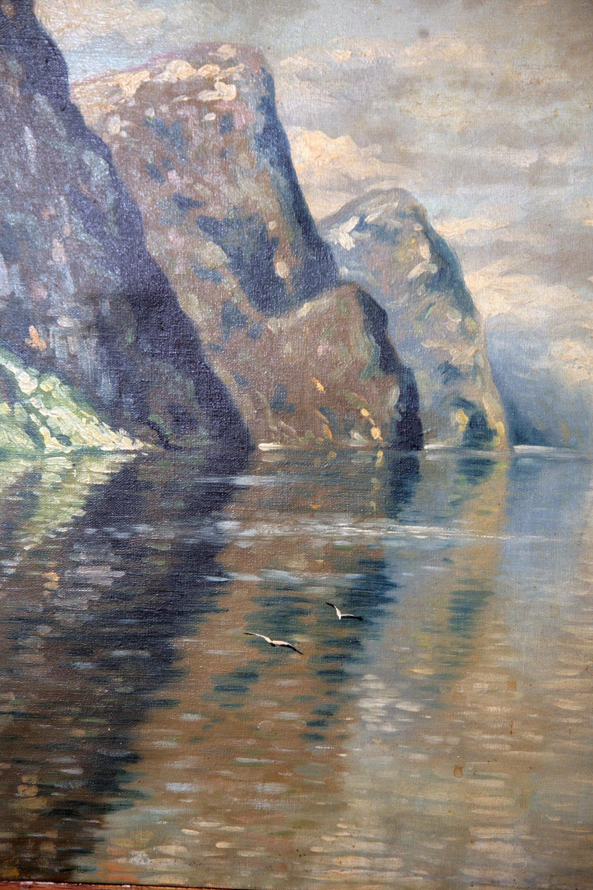 Уважаемые эксперты! Попала в руки такая вот работа (просили помочь продать) норвежского художник Hugo Lous Mohr (1889-1970), уж не знаю, как правильно его транскрибировать на русский. Холст, масло, размер 67 - 90 см. Картина была в неважном состоянии (местами началось осыпание краски, четыре мелкие дырочки), поэтому первым делом отнес к реставраторам, а теперь вот сюда за советом. О художники информации мало, разве что на норвежском (https://nkl.snl.no/Hugo_Lous_Mohr), известен в основном росписью кафедрального собора в Осло (видел - здорово), 36 его работ в Нац.галерее в Осло. На аукционах бывает редко и недорого (до 1000 долларов по известным мне источникам). Вопросы таковы: 1) может ли быть интересен кому-то в России или только в качестве украшения интерьера (есть же и кроме меня любители Норвегии