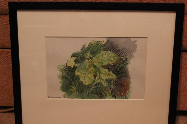 Свешников Б.П. (1927-1998) "Натюрморт с листьями и шишкой" (1978). Бумага, акварель. 17,6х27,3. Рама, паспарту.