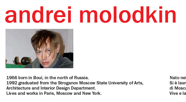 ...основным дошедшим до нас из Италии скандалом стал эпизод с жестом художника Андрея Молодкина. Вы его должны помнить по самобытным насосным инсталляциям – внутри плексигласовых скульптур прокачивается жидкость (обычно нефть), превращая скульптурную цитату (обычно политическую) в абсолютную метафору. По каждой такой фразе (G8, COLD WAR II и пр.) или образу (распятие, Ника и пр.) можно написать сочинение на 48 листов.